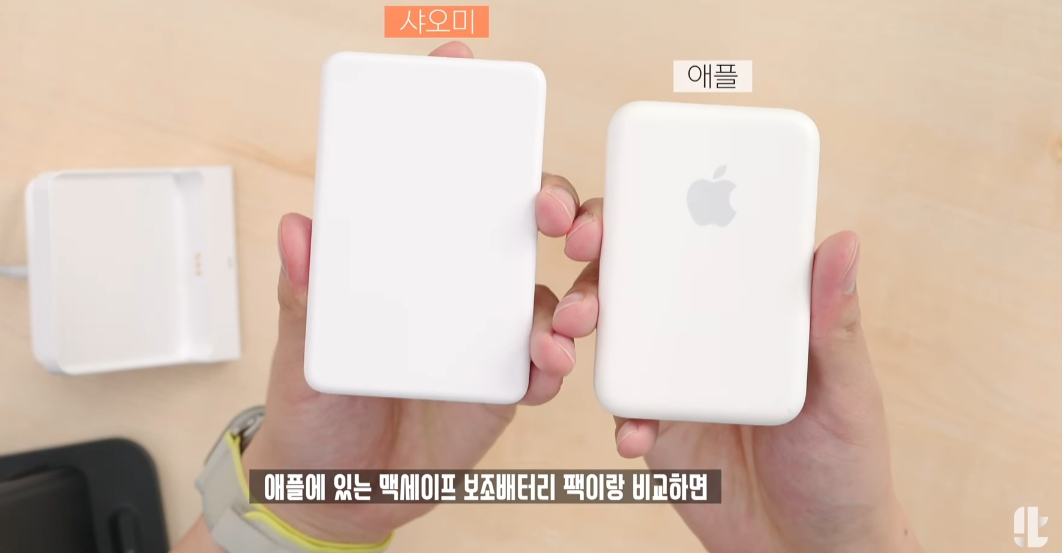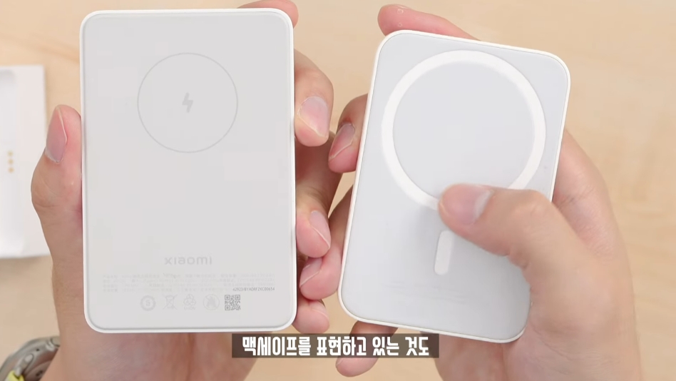 애플 정품 맥세이프 보조배터리와 샤오미 맥세이프 보조배터리를 비교하고 있습니다. 애플 정품은 12만원 수준을 고려하면 절반보다도 더 저렴한 수준의 가격대는 맞네요. 장사꾼 샤오미!