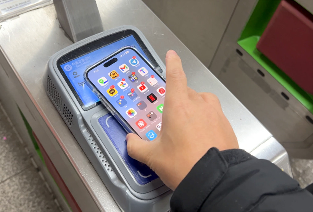 또 지하철, 버스에 아이폰 교통카드로 태깅하면 바로 됩니다. 카드 안 꺼내도 됩니다.