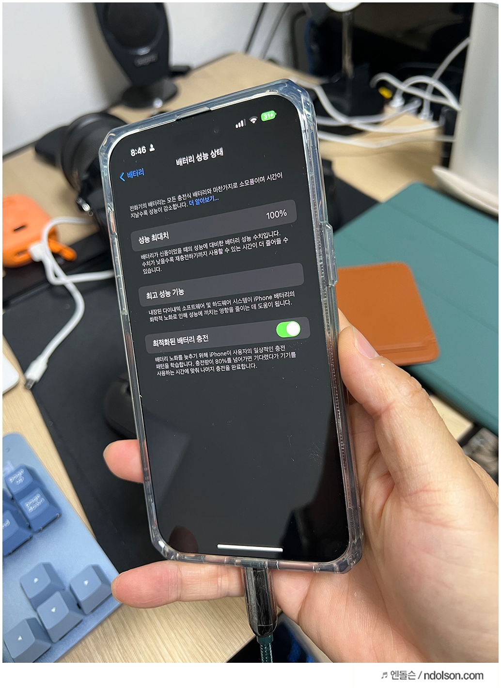 1년 정도 지나면 2~3% 배터리 성능이 떨어지게 됩니다. 너무 과충전 되지 않게 스마트폰의 기능으로 배터리 수명을 관리하지만, 배터리 성능이 떨어지게 되죠.
