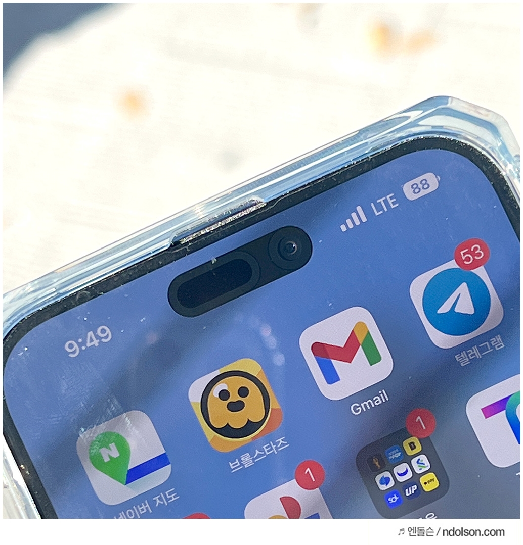 아이폰13에서 아이폰14로 오면 확실히 다이나믹 아일랜드에 적응해야 합니다. 신경을 안 쓰면 안 쓰게 됩니다.