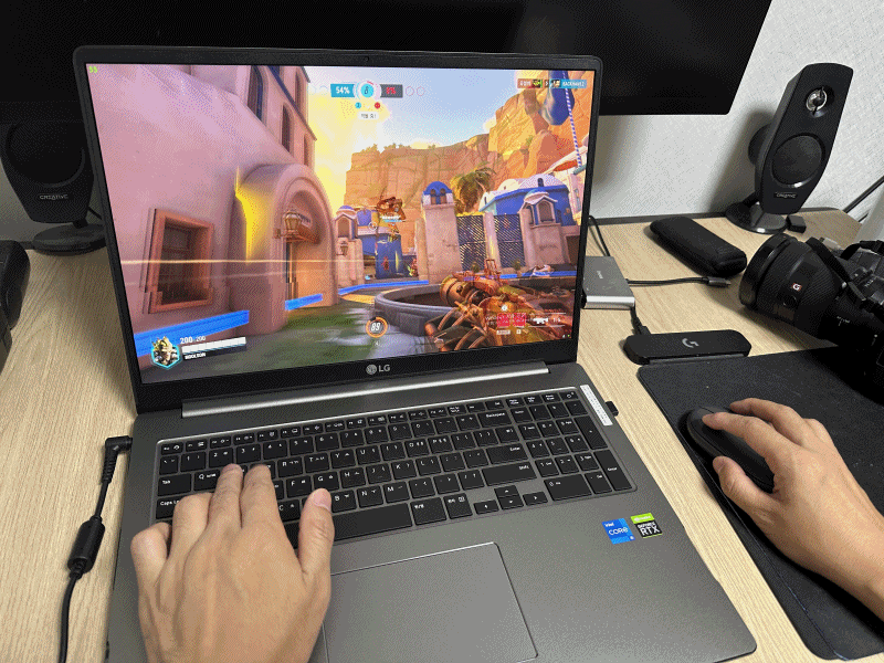 LG울트라PC(LG 17UD70Q-PX50K)으로 오버워치2와 배틀그라운드를 즐겨보았습니다. 평소 게임을 즐기시는 분이라면, 장소에 무관하게 게임을 즐기고 싶을 것입니다. 또 심플한 데스크 스타일에 노트북 구성의 책상을 원하실 텐데요.