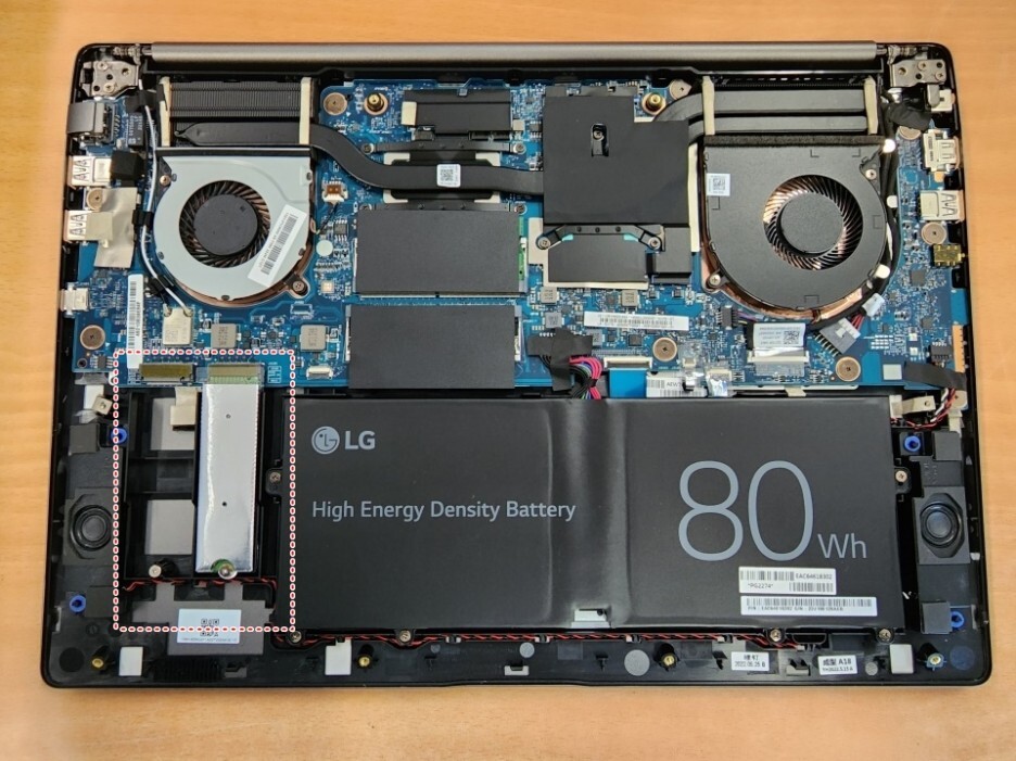 노트북은 확장성이 어렵지 않게 NVMe SSD 슬롯을 총 2개 중 1개의 여유분으로 제공합니다. 기본 장치의 저장 공간이 256GB이므로 조금 작을 수 있어 사용자에 따라 확장하여 사용하면 좋습니다.