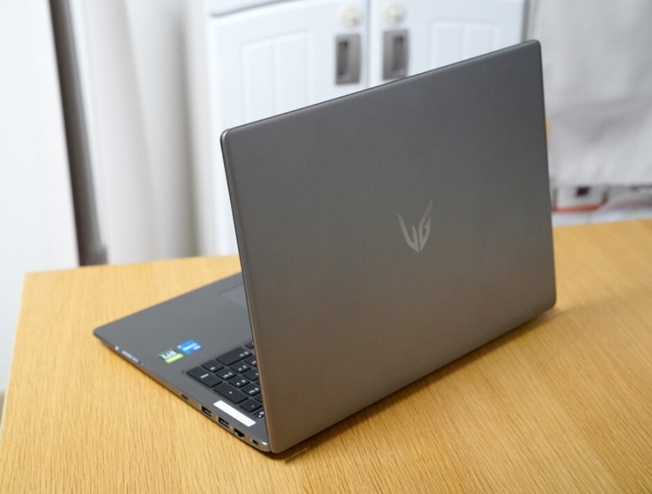 처음 눈에 들어오는 WG 문양은 LG 울트라기어 브랜드 로고였습니다. 역동적인 문양에 심플한 노트북 전면을 보여 주는데요. LG 로고가 아닙니다. 더 심플하게 즐기라고 LG 울트라기어 기어 로고가 각인되어 있죠.