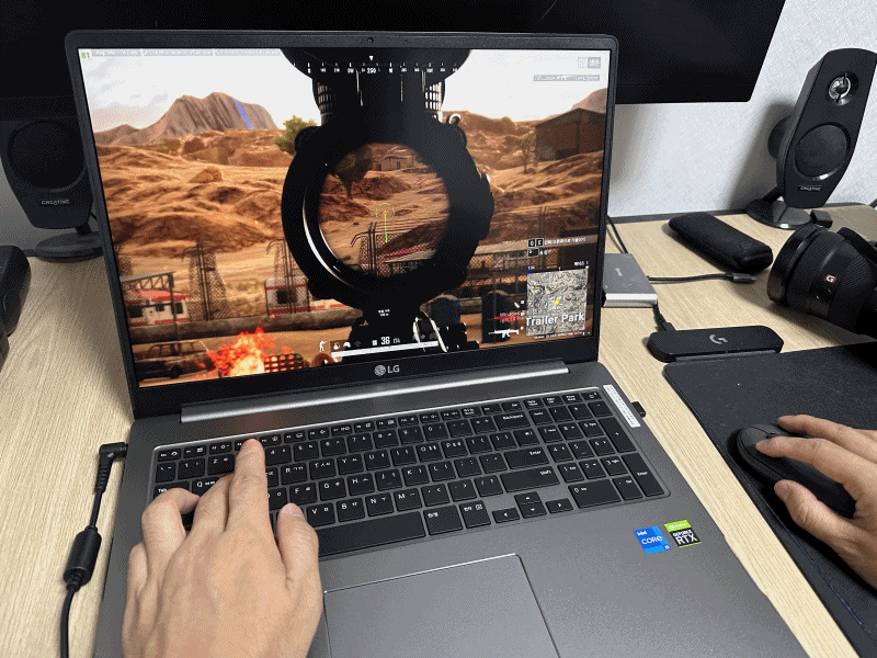 배틀그라운드, 오버워치 2 게임을 통해서 즐겨보니 고해상도 17인치 IPS LCD 디스플레이로 선명한 화질과 RTX3050Ti 외장그래픽카드 탑재로 쾌적한 게임 환경을 제공한다는 점입니다.