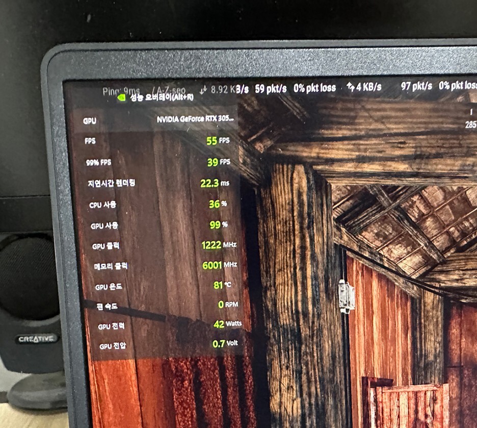 노트북 디스플레이가 60Hz라서 프레임은 60fps로 제한적이지만, 게임을 진행할 때 옵션 타협으로 괜찮은 성능을 보여주었습니다. 60~90fps 프레임을 보여주었으며, 오버워치 2 게임 정도는 구동에 무리가 없는 수준입니다.