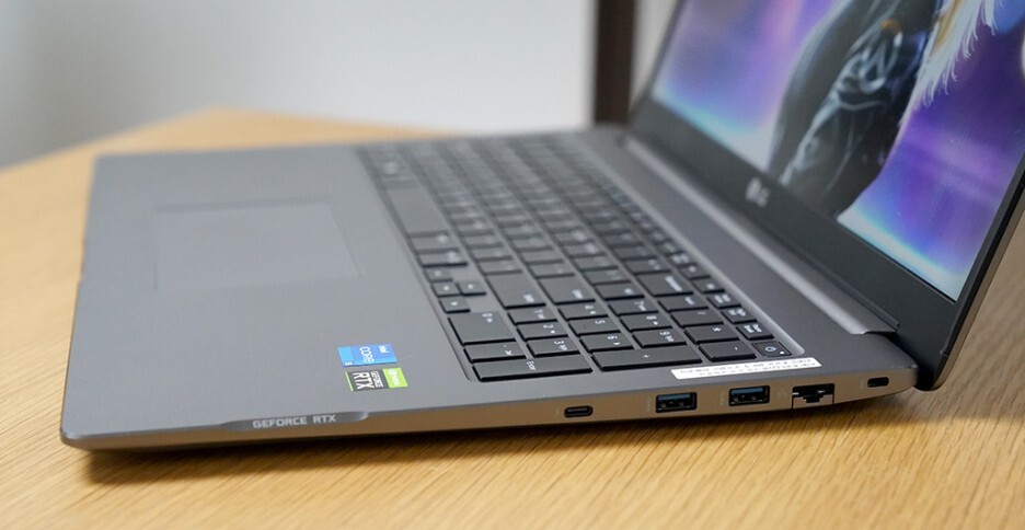 우측면에 USB3.2 2개, 유선랜 포트, 선더볼트 4(Thunderbolt)가 위치하고 있고, 좌측면에는 전원, HDMI, USB3.2, 오디오 단자, 마이크로 SD가 있습니다. 노트북에 거의 모든 인터페이스를 제공하여 부족함 없이 사용할 수 있습니다.