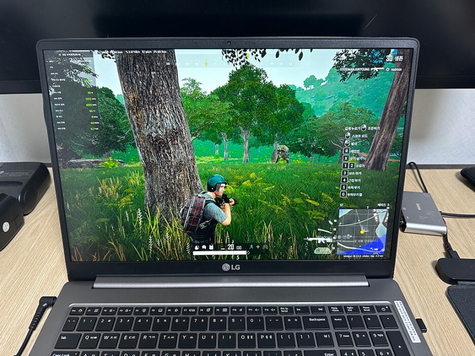 1인칭 슈팅게임(FPS)의 대표주자인 배틀그라운드 게임을 즐겨보았습니다. 사실 큰 기대는 하지 않았지만, 상당한 수준의 게임을 즐길 수 있어 게이밍 노트북처럼 쾌적한 성능을 즐길 수 있었습니다.