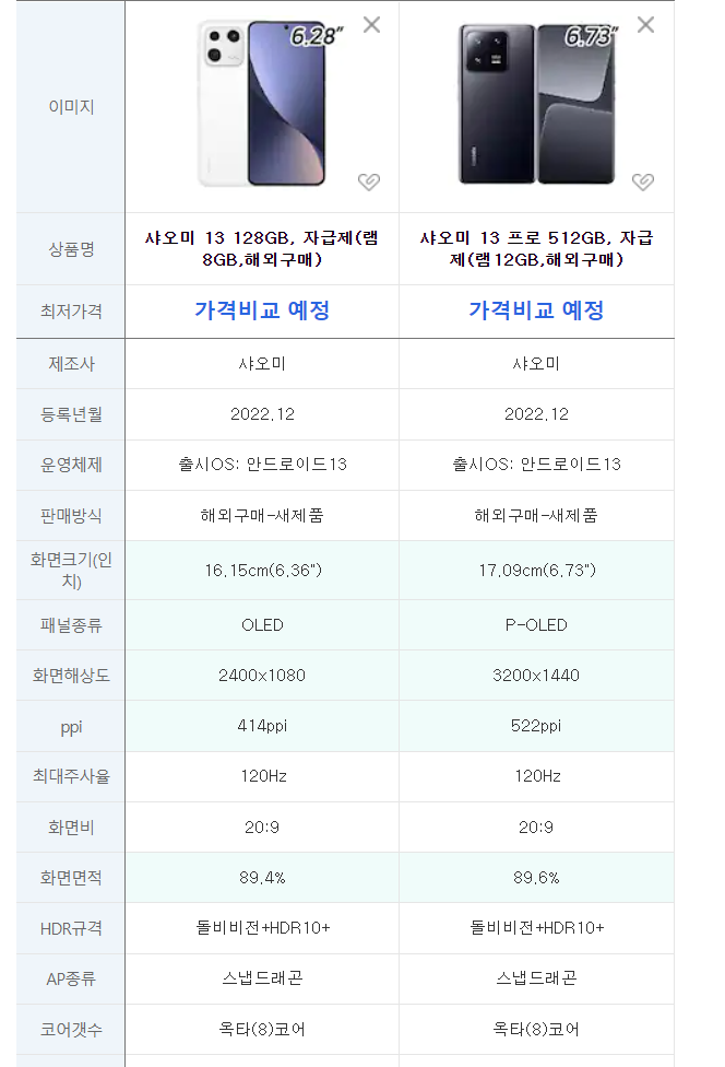 가격은 샤오미13 83만원, 샤오미13 프로 가격은 103만원선입니다. 관부세가 포함된 가격으로 구매할 수 있습니다.