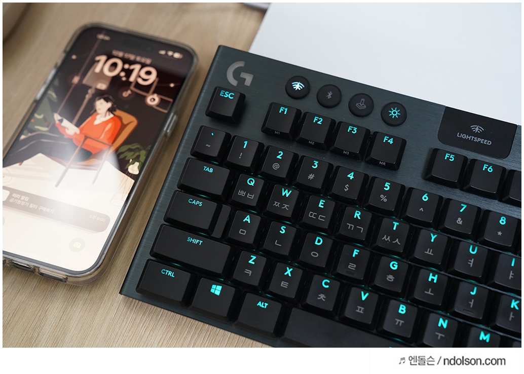 또 아이패드 태블릿의 블루투스 연결의 타이핑 작업과 PC 컴퓨터 게임을 즐길때 정확성과 속도면에서도 뛰어난 로우 프로파일 기계식 키보드로 좋습니다. 또 이중 무선 연결로 USB 수신기를 통한 LIGHTSPEED 무선 연결 또는 블루투스로 무선 연결을 지원합니다.