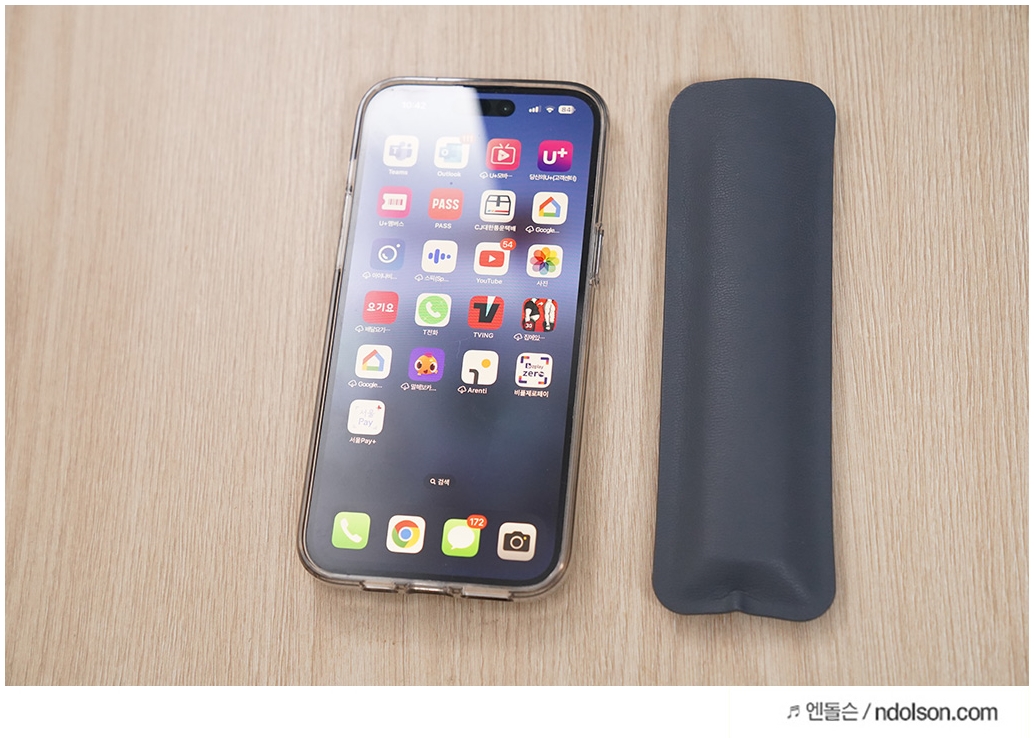 크기는 아주 작고 가벼워 전용 가죽파우치에 넣어 휴대하기 좋습니다. 높이 131mm, 너비 28mm, 깊이 12mm의 크기에 49g으로 아이폰 14 프로맥스 크기정도에 엄청 가벼운 무선 프리젠터입니다.