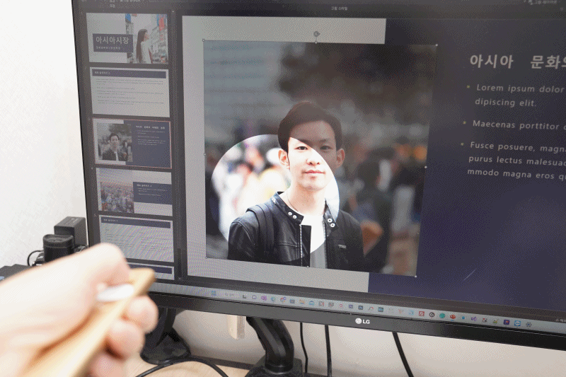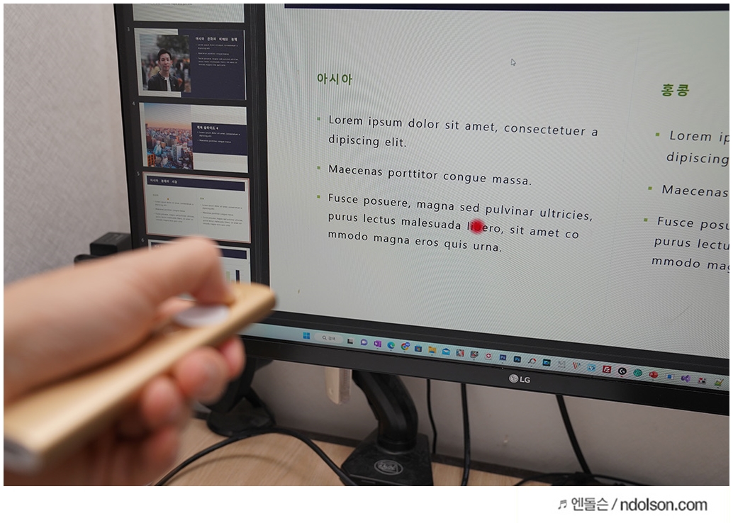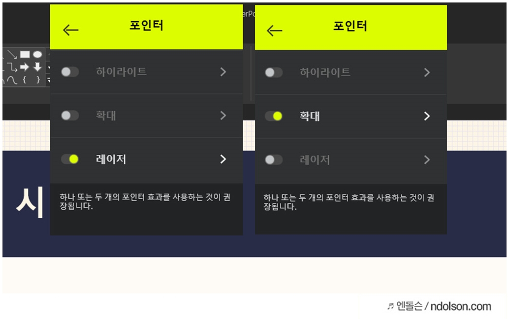 레이저 포인터는 원하는 색상으로 지정하여 중요한 포인트를 콕 찍어 알려 줄 수 있었습니다.