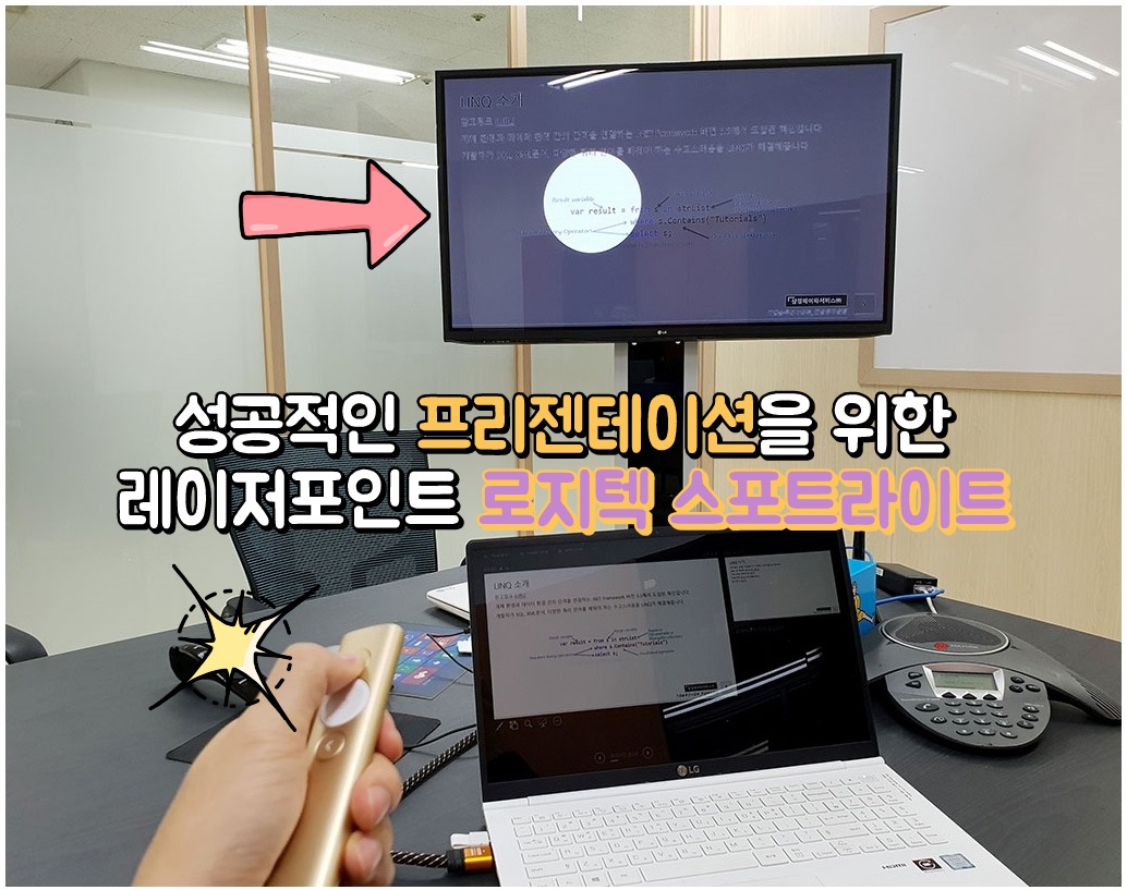 이런 게 바로 상호 피드백이 오가는 성공적인 프레젠테이션 기법이라고 생각합니다. 그러면 자주 회의실에서 발표를 할 때 필수구매품으로 있으면 좋은 게 바로 레이저 포인터 일 것입니다. 이번에 로지텍 스포트라이트로 발표할 때 시선을 집중할 수 있고 어떤 도움을 줄 수 있는 아이템인지 소개합니다.