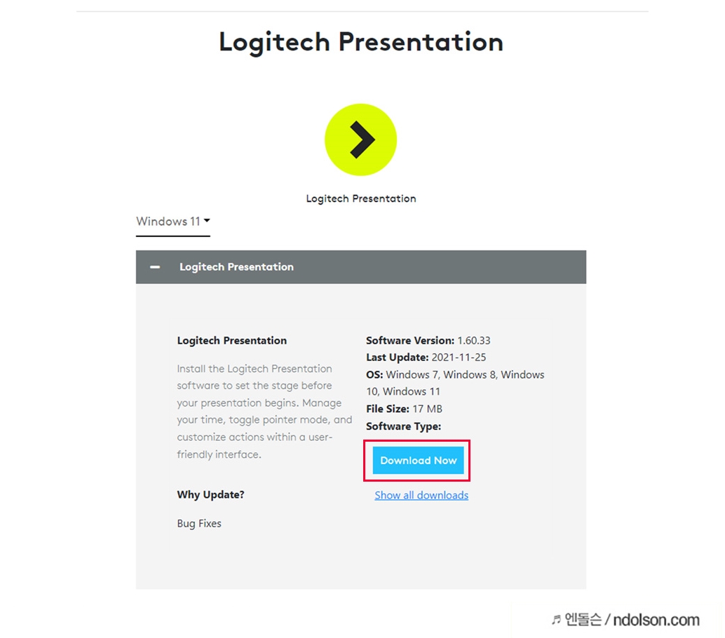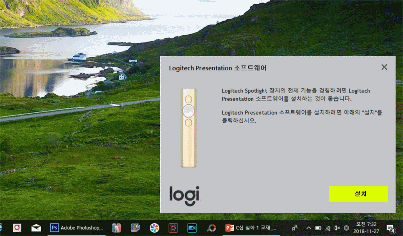 만약 설치되지 않는다면, 로지텍 프레젠테이션(Logitech Presentation) 프로그램을 설치하시면 됩니다. 윈도우/맥 모두 지원합니다. 윈도우/맥 버전에 맞게 프로그램을 설치하시면 됩니다.