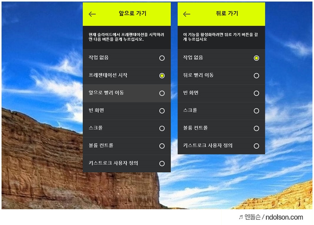 또 버튼을 눌렀을 때 어떤 기능을 실행할지 설정하여 작업설정도 가능합니다.