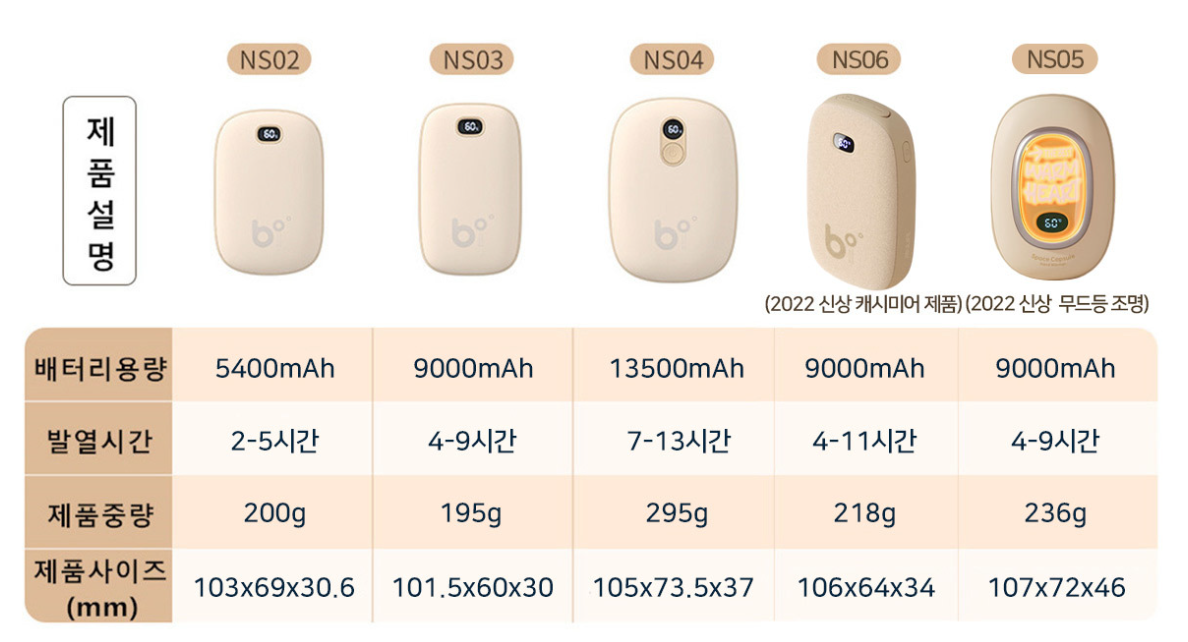 개인적으로는 360도 전면발열이 좋은데 모양은 우주선이 더 이쁜 라이트가 나와서 좋습니다. 무게는 예민하지 않아 다 비슷했지만, 와이프 말로는 g이 가벼운게 더 좋다고 하네요. 자주 사용하면 전자파 이슈도 있겠지만, 가끔 야외에 추울 때는 꼭 필요하네요.