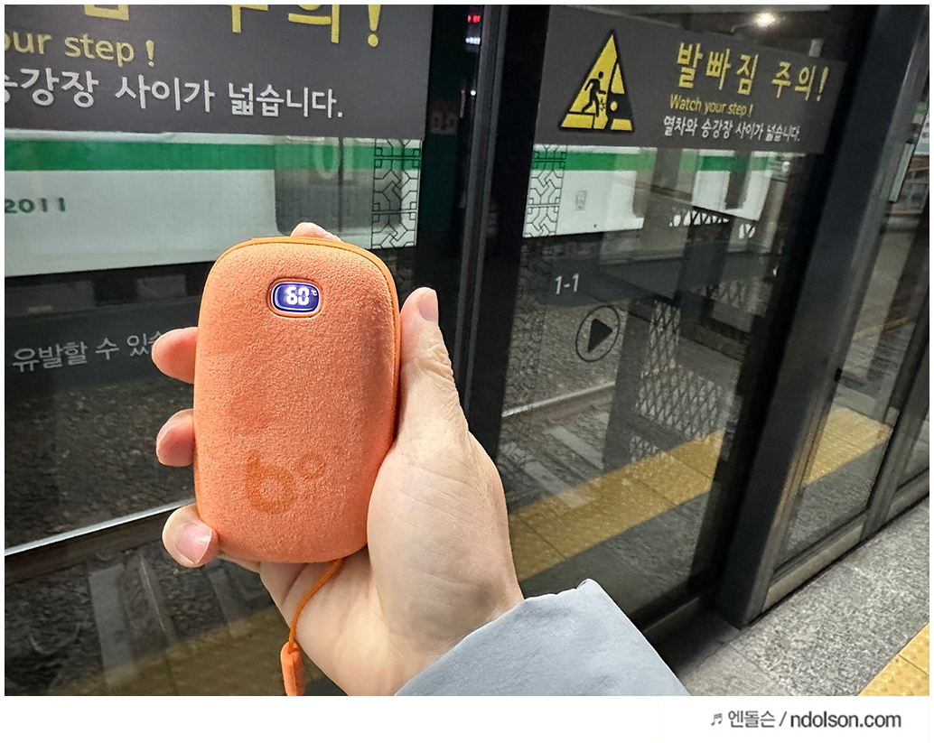 팁! 40도로 계속 켜두는 게 배터리 소모가 적당하고 충분히 따뜻합니다.