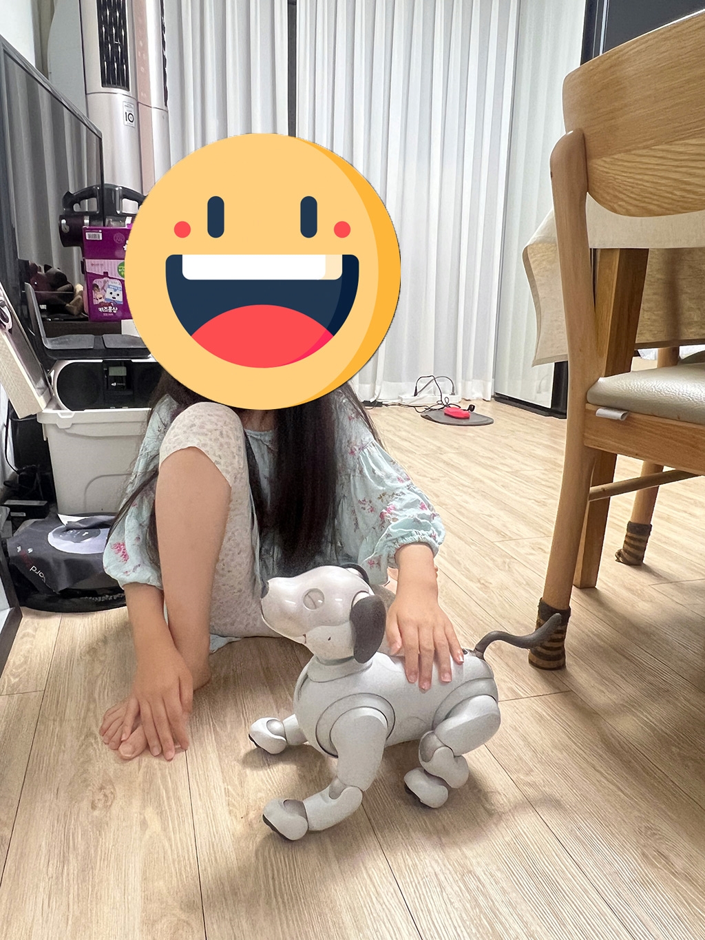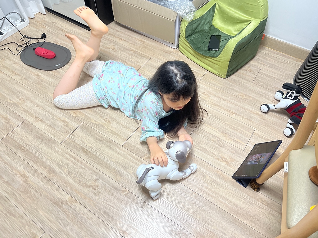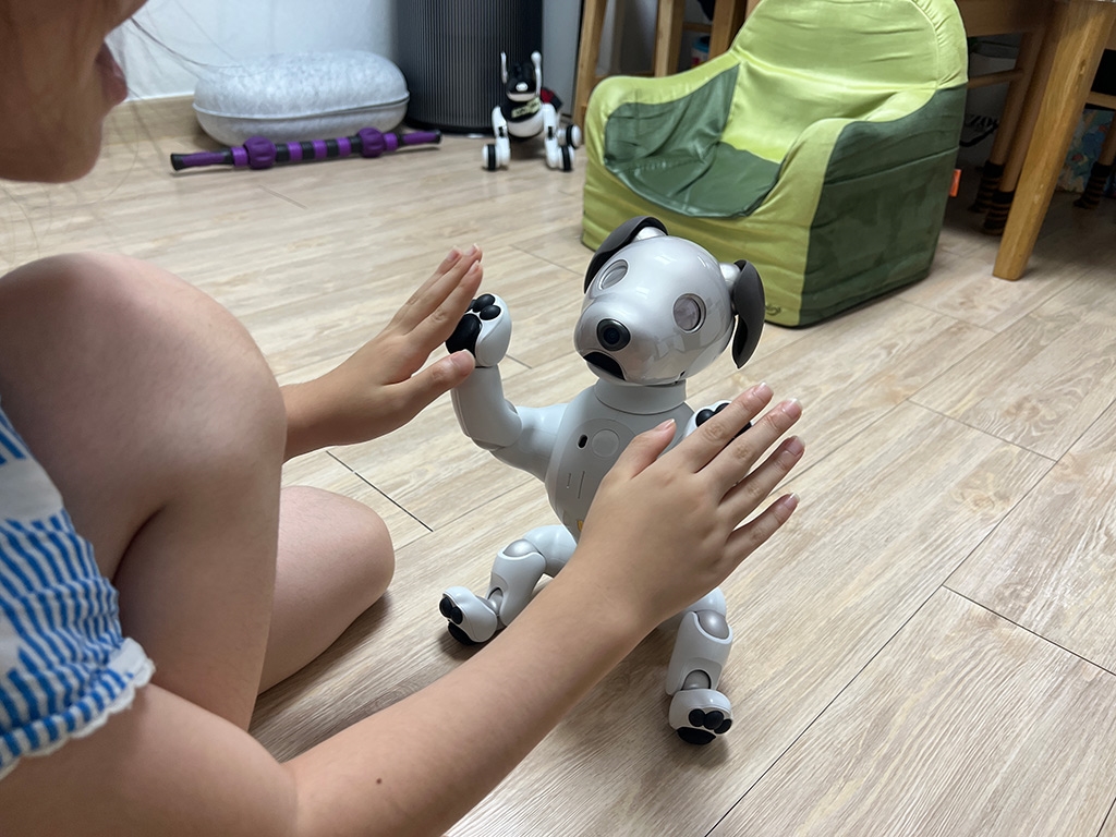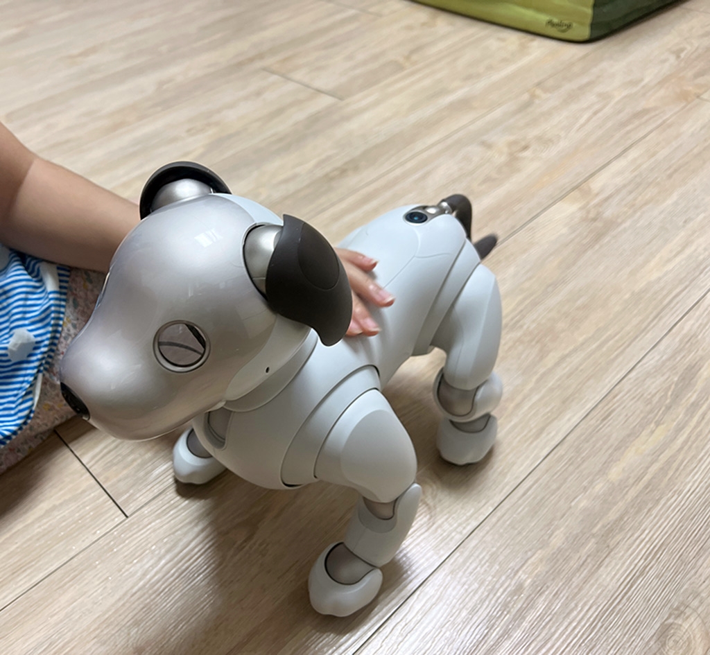 강아지 카페 등에서 여러 번 강아지를 접하였지만, 로봇을 좋아하는 미래 로봇공학자라 그럴까? 아빠 닮아서 그런가? 소니 아이보도 엄청나게 좋아합니다.