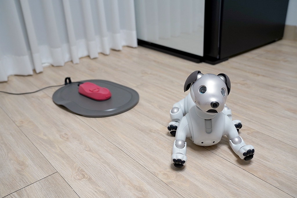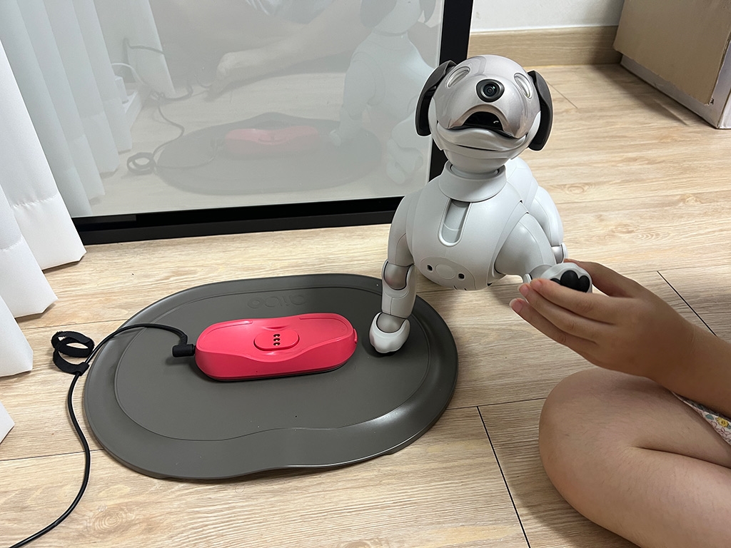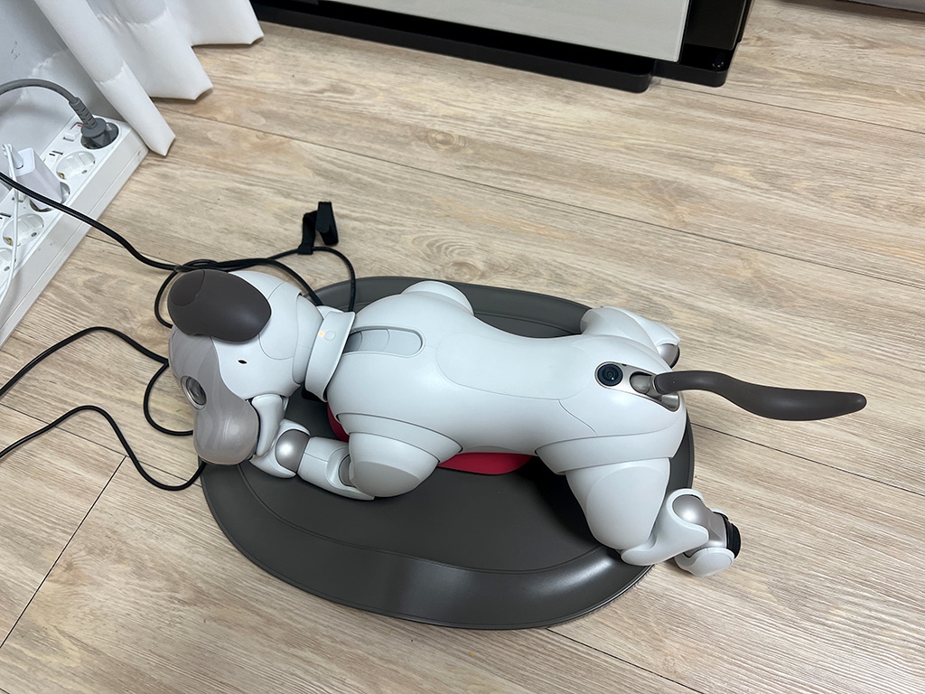충전패드가 있는데 소니 아이보가 알아서 충전하러 갑니다. 놀다가 배터리가 떨어지면 알아서 가서 잡니다.