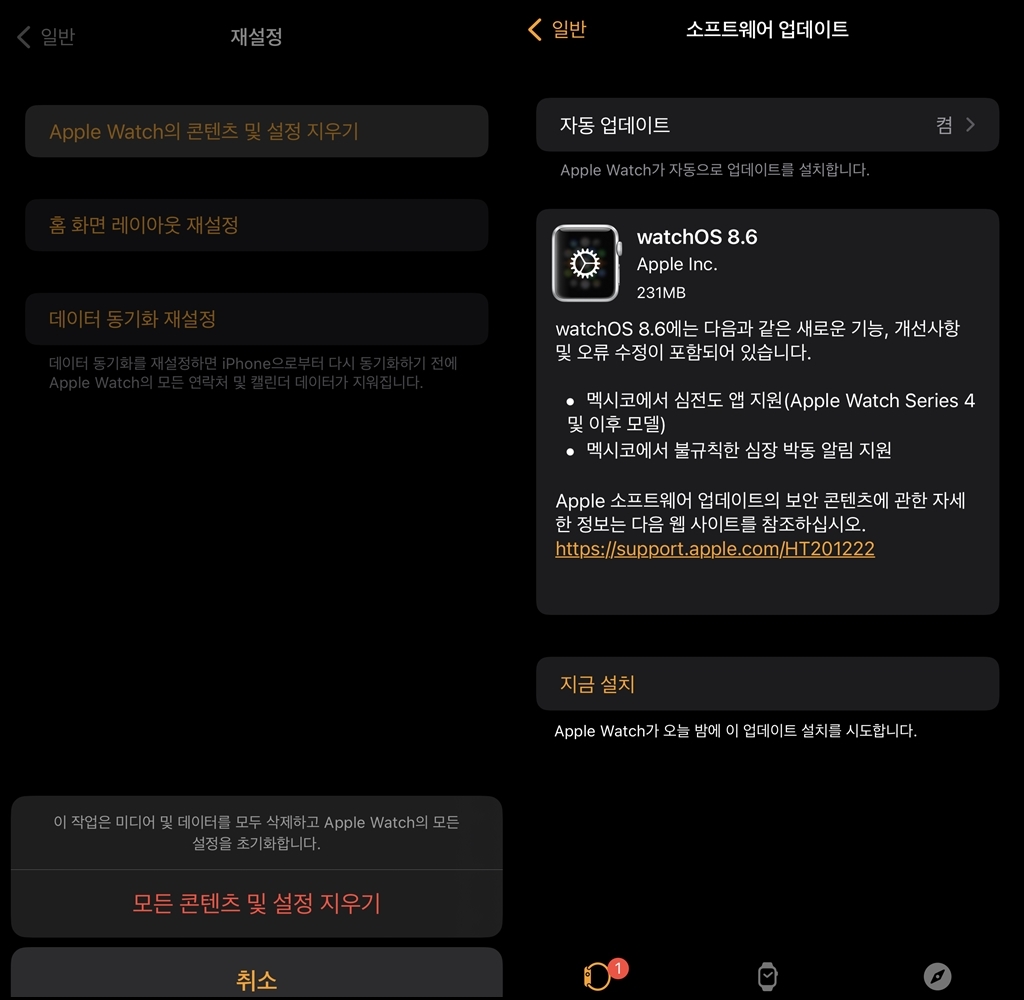 애플워치 업데이트 오류 해결책은 바로 애플워치 초기화