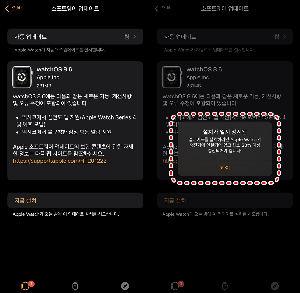 애플워치 업데이트 오류 해결방법