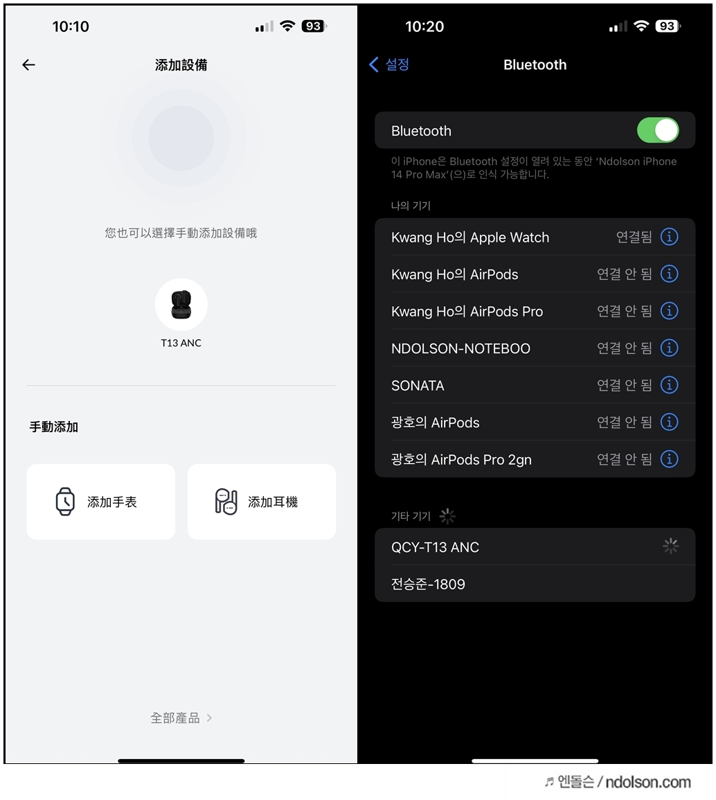 그래서 아이폰 블루투스 설정에서 QCY T13 ANC 모델을 선택해서 블루투스를 잡아주면 됩니다.