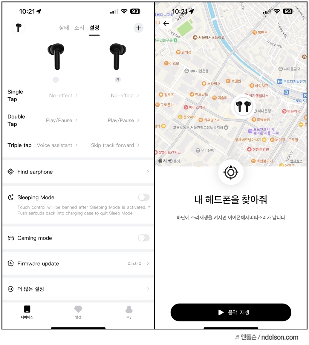 또 음악을 재생하여 이어폰 찾기도 가능한 기능이 있어 분실 시 찾기가 가능하겠네요!