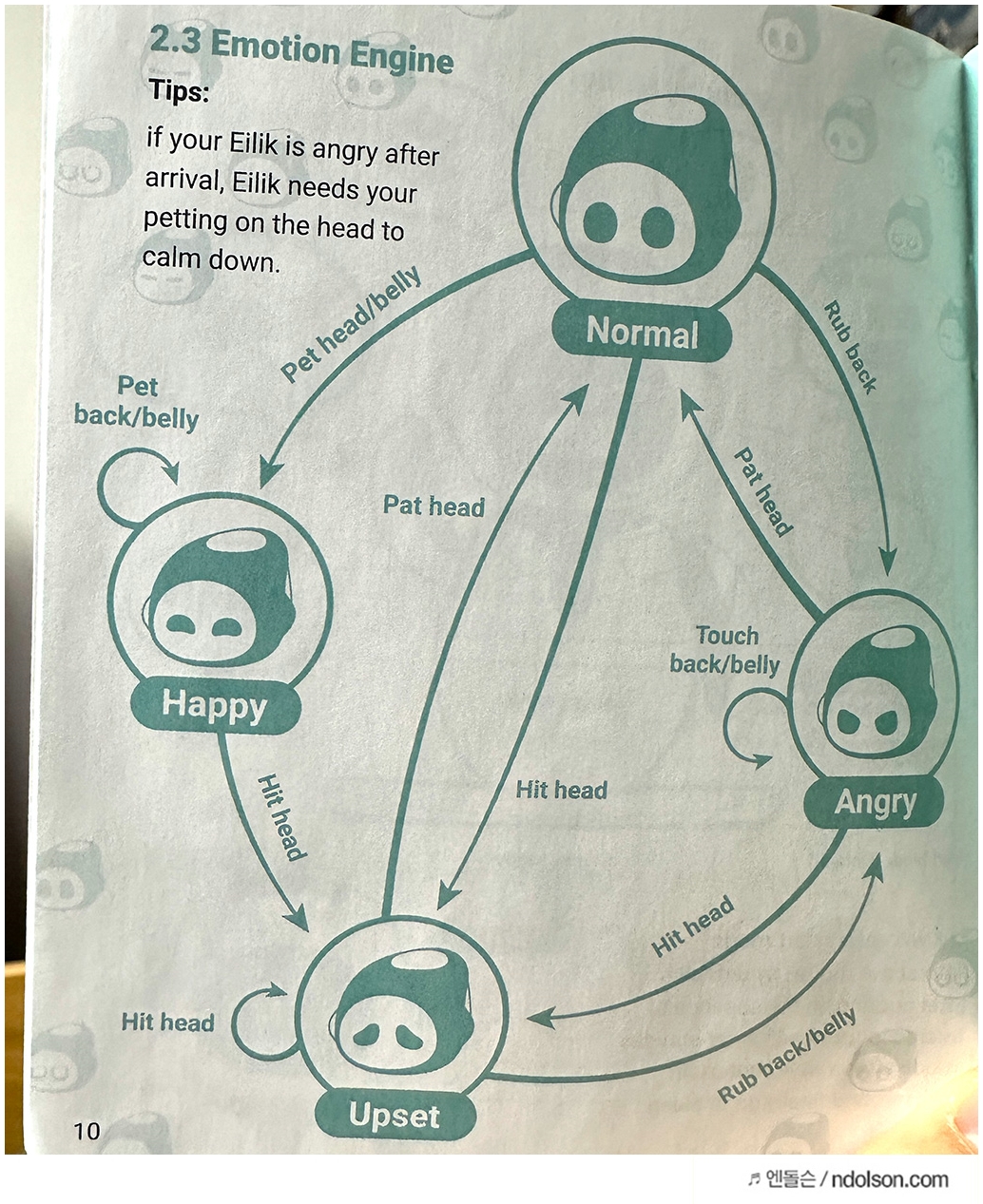 에일릭 로봇은 프로그래밍되어 있겠지만, 감정이 행복, 슬픔, 분노, 보통을 왔다 갔다 하는 로직이 있게 설계되어 있네요.