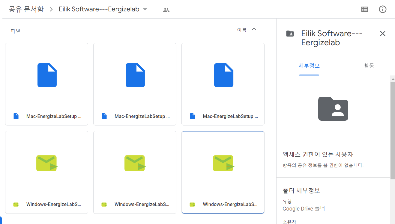 구글 드라이브로 연결되며 최신 버전인 에일릭 소프트웨어(Windows-EnergizeLabSetup v1.04.exe)를 설치하시면 됩니다.