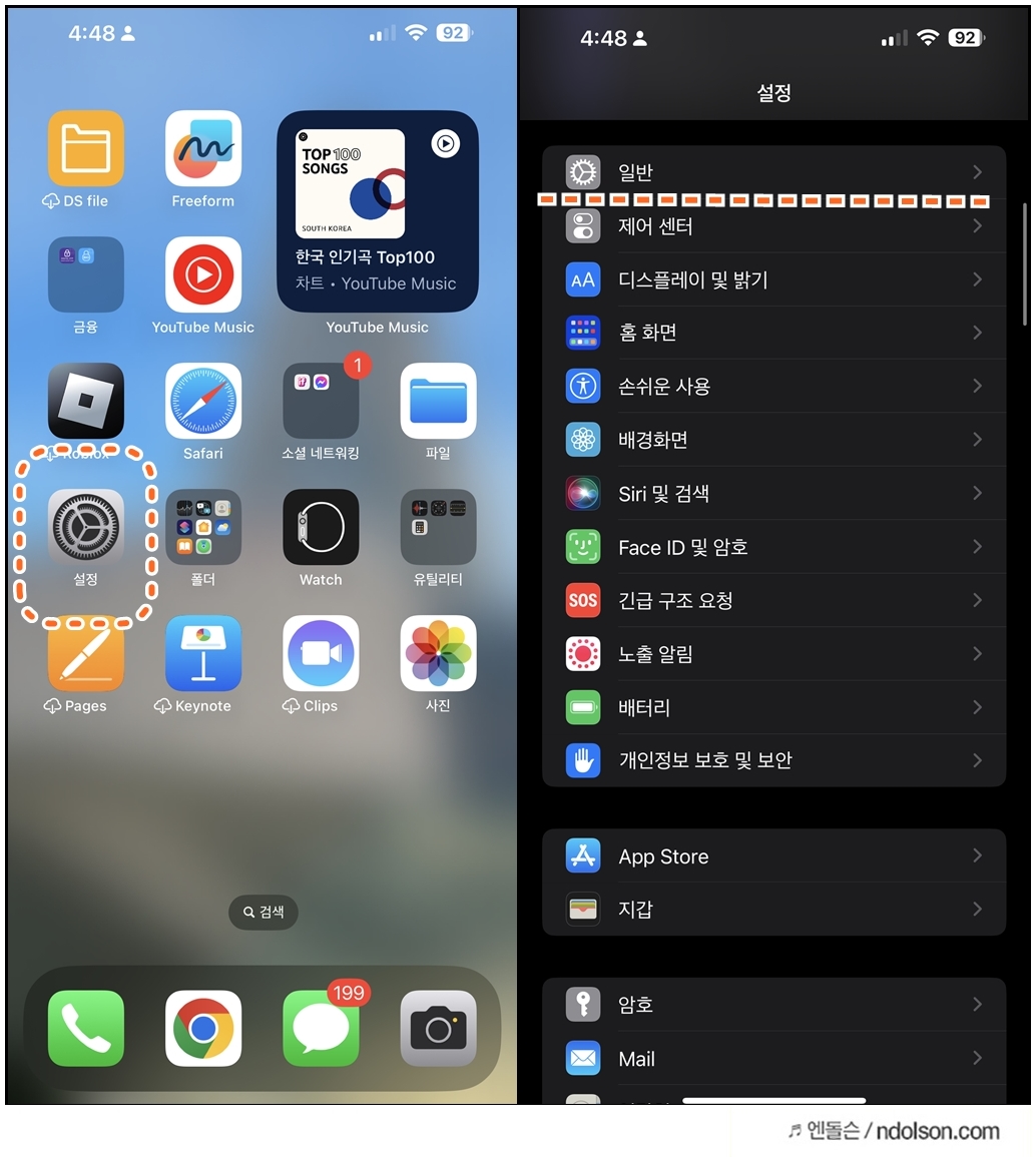아이폰 설정 앱 실행 > 일반 > iPhone 저장공간