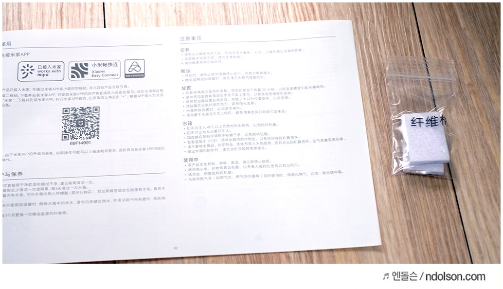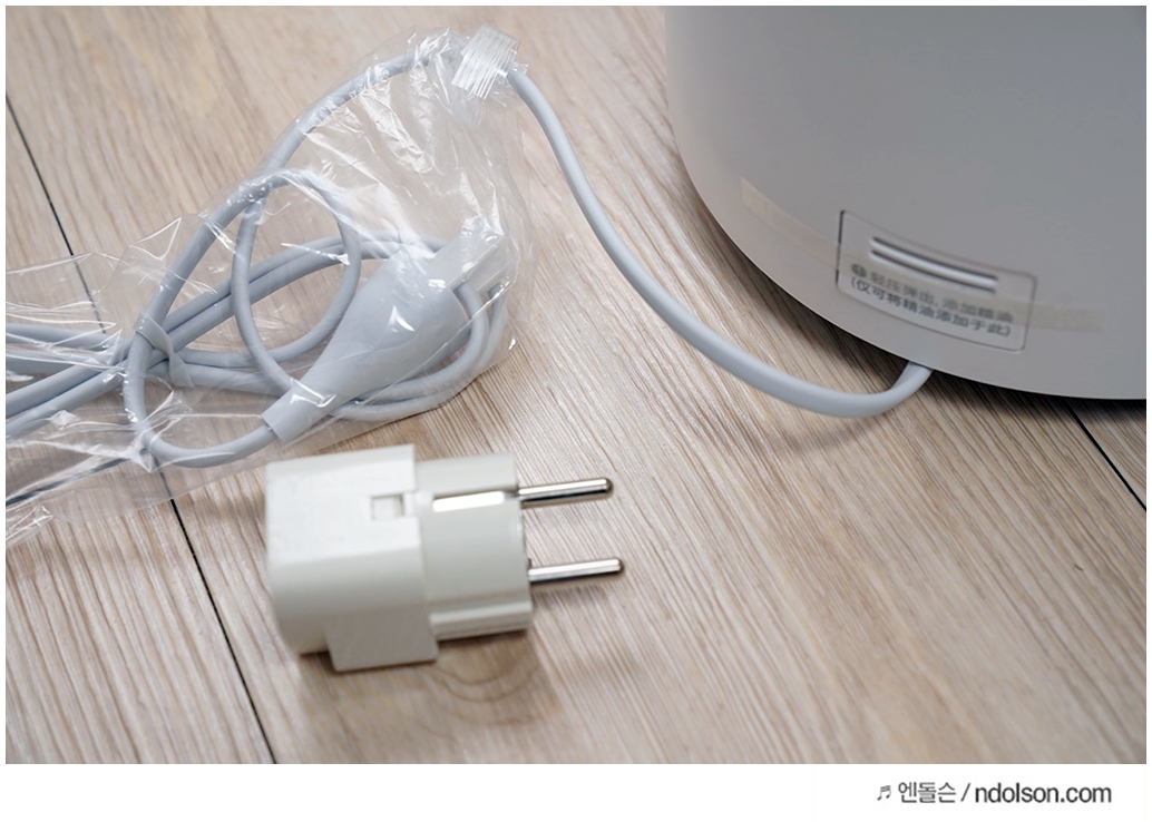 샤오미 가습기 2 구성품은 매뉴얼(중국어), 220v 콘센터, 필터로 구성되어 있습니다. 해외직구지만 역돼지코 꽂고 바로 사용할 수 있는 프리볼트 전압을 가지고 있습니다. 23W 소비전력을 가지고 있습니다.