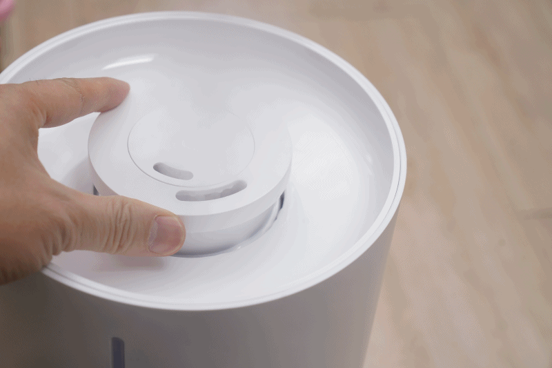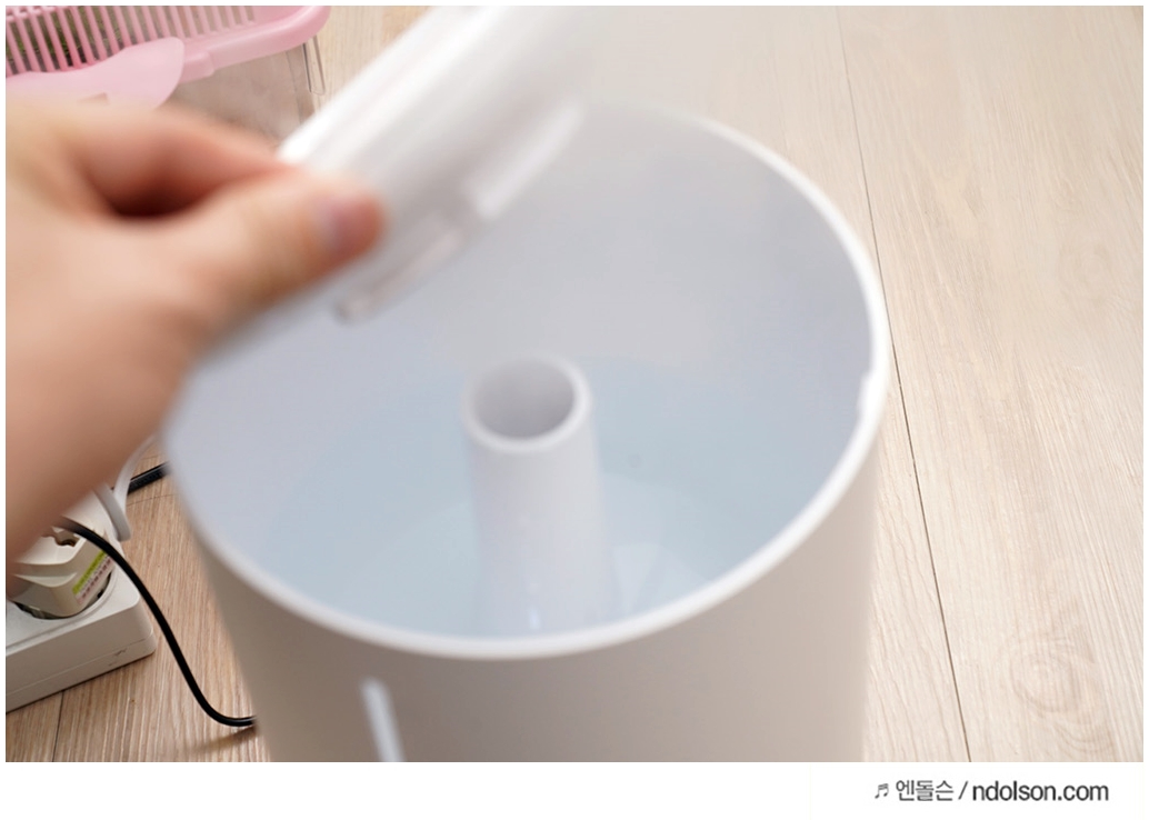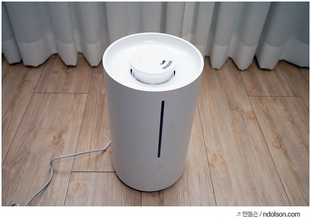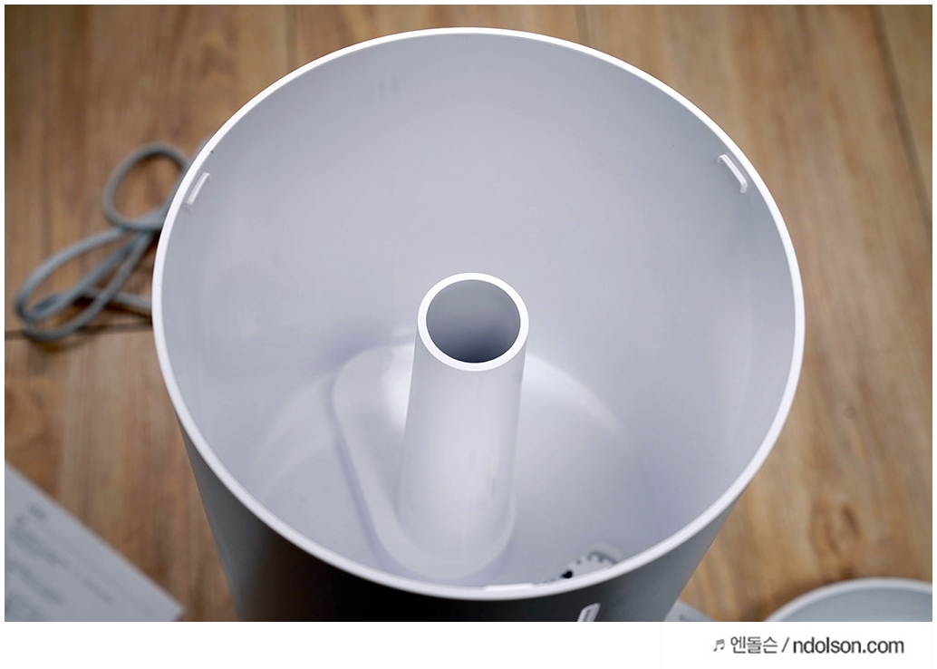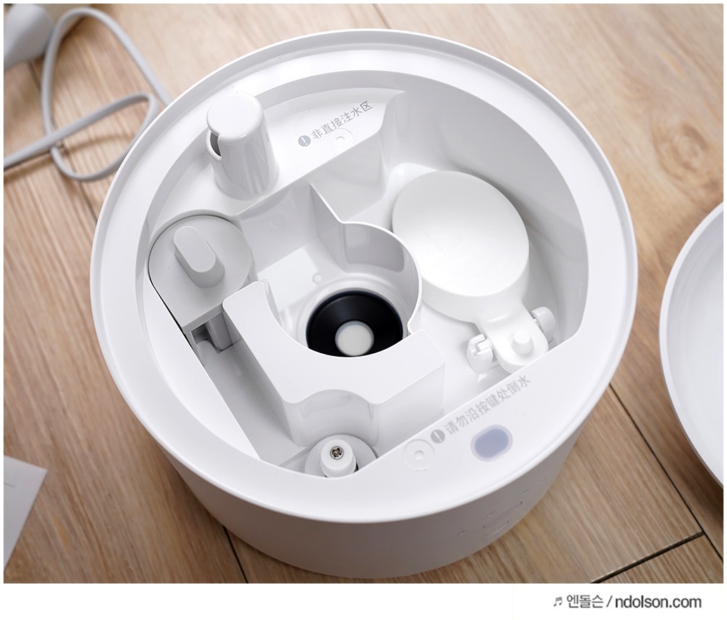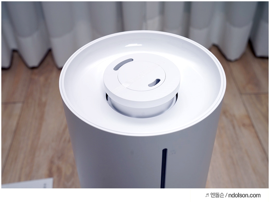 외형에서 가장 눈에 띄는게 이 부분인데 365도 가습분사가 되고, 위로 바로 물을 부어서 사용할 수 있어 좋습니다. 디자인은 화이트로 나름 깔끔하고 세척도 간편한 게 장점이라고 생각합니다.