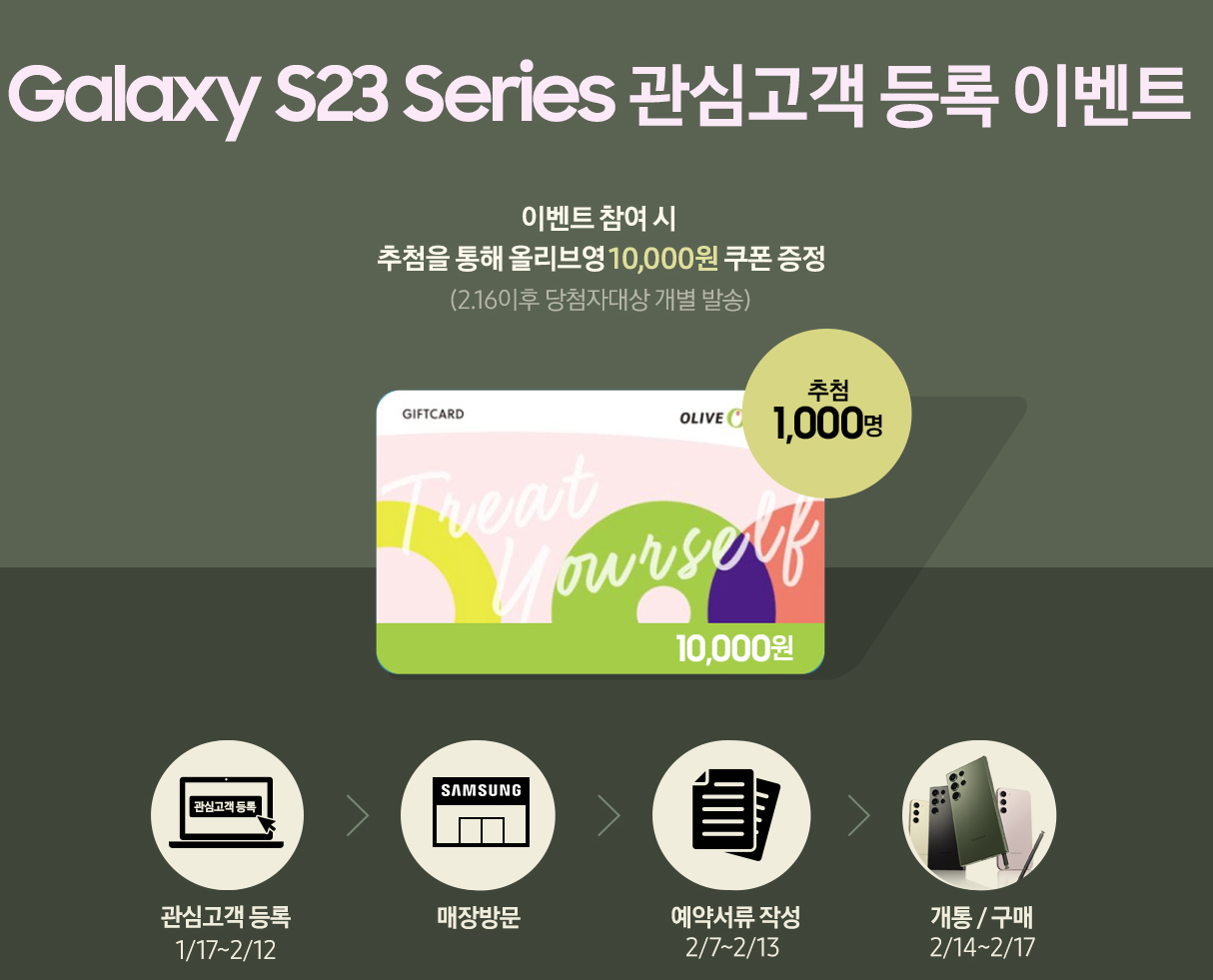 혜택 신청 기간: 2/17(금)~4/30(일) 내 Galaxy S23 시리즈를