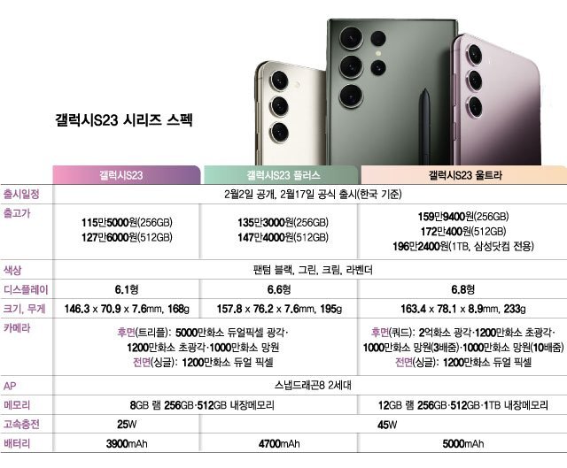 갤럭시S23 울트라는 256GB·512GB·1TB로 출시되며 가격은 각각 159만9400원, 172만400원, 196만2400원입니다.