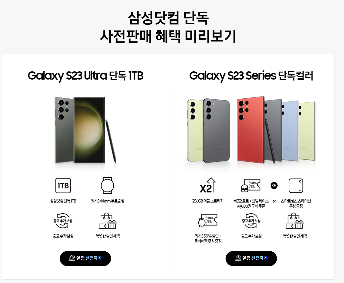 <갤럭시S23 제조사 사전&일반 구매 혜택>