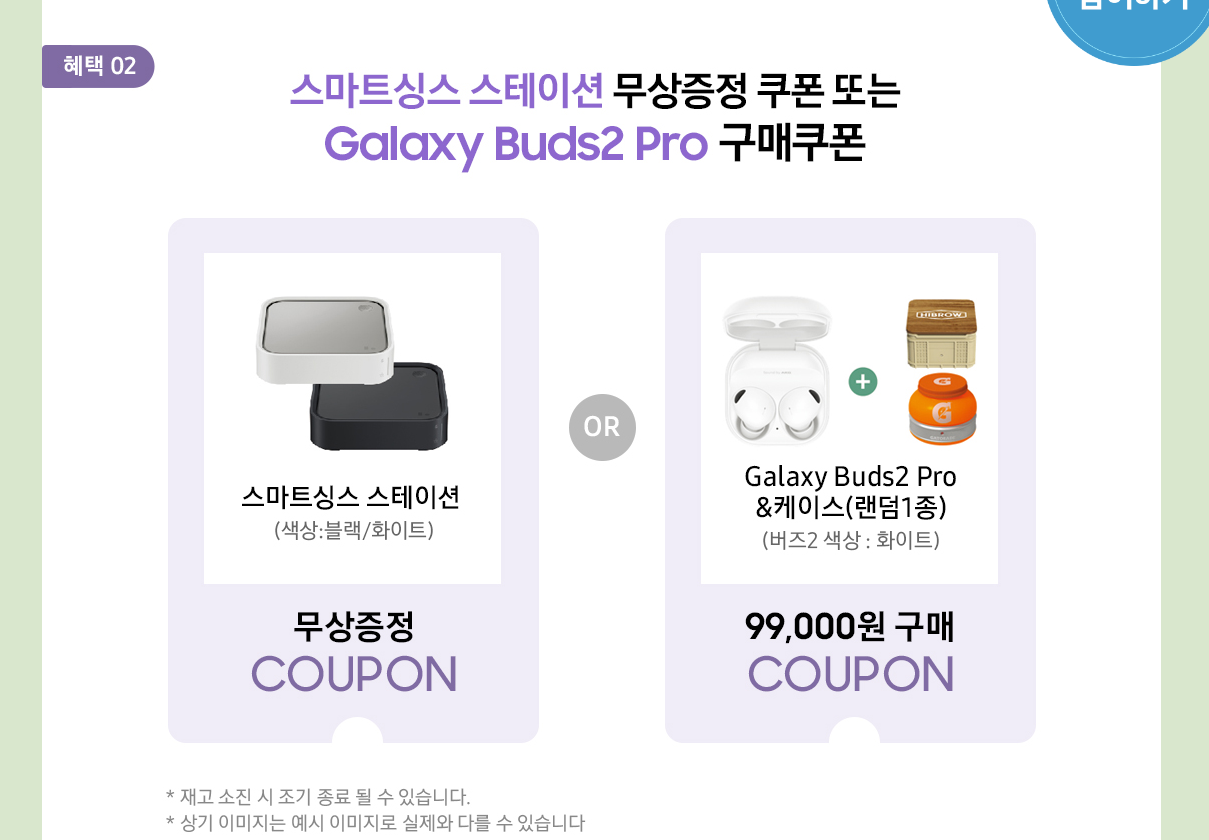 혜택2. 스마트싱스 스테이션 무상 증정 또는 Galaxy Buds2 Pro 구매 쿠폰