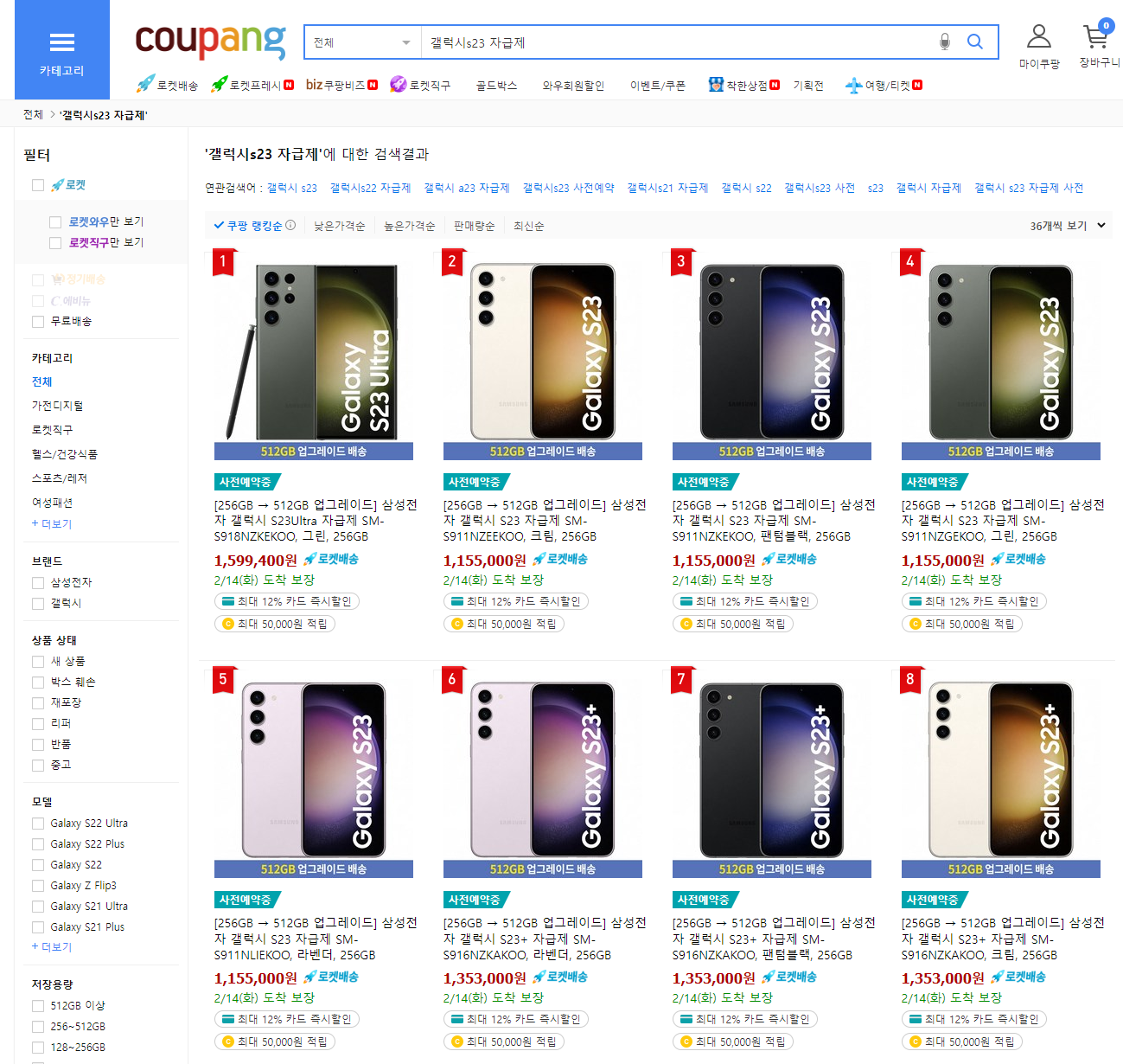 갤럭시S23 사전예약일인 2월 7일 00시(2월 6일 11시 50분부터 기다려야지!!) 쿠팡 사이트가 마비될 겁니다
