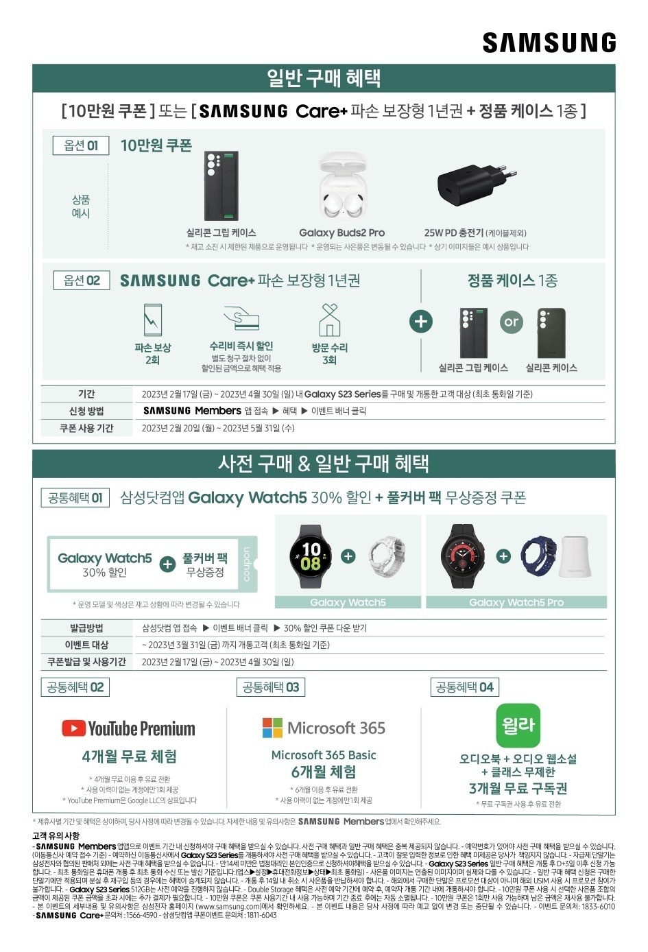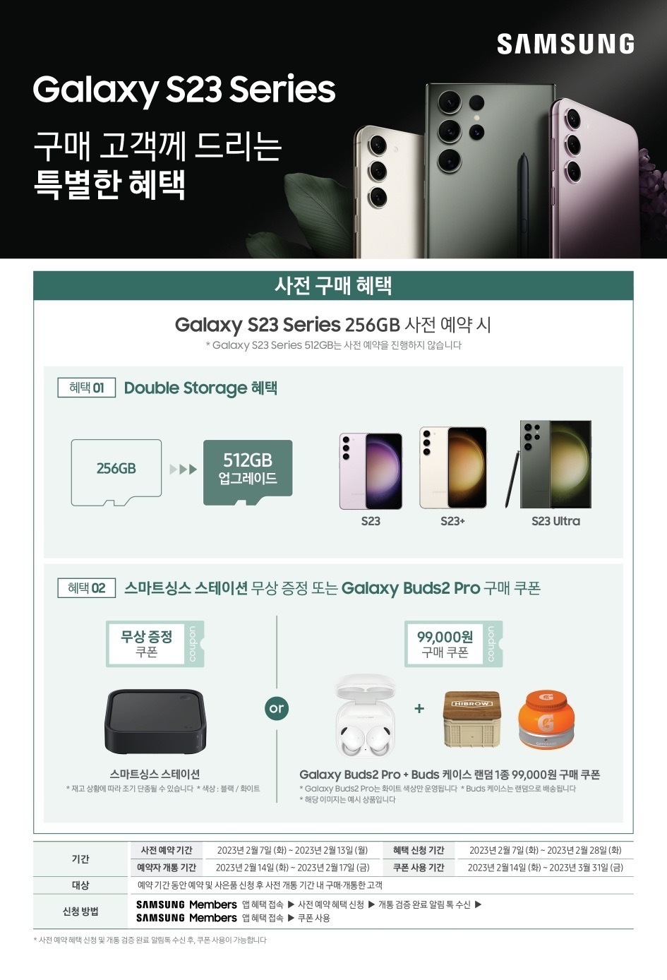 혜택 신청 기간: 2/17(금)~4/30(일) 내 Galaxy S23 시리즈를
