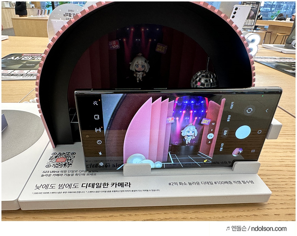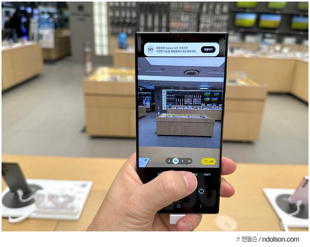 곧 갤럭시S23 울트라를 구매할 예정이지만, 아직 없어 빠르게 체험존에서 미리 경험해 보았습니다. 놀라운 카메라 성능은 촬영하면서 2억 화소(200MP)와 50MP로 카메라 촬영을 하면서 갤럭시 S23 Ultra의 성능을 느껴볼 수 있었습니다.