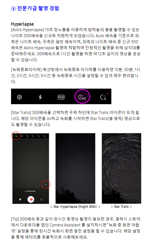 야간에 갤럭시S23 울트라로 달사진, 별 궤적 촬영을 하는 방법을 설명하였습니다.