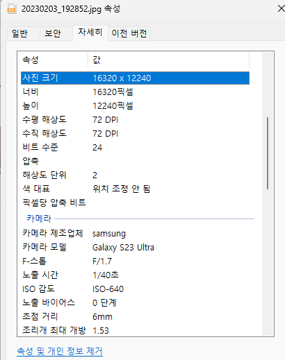 갤럭시S23 울트라 사진 파일은 20.0MB (20,995,556 바이트)의 고용량의 사진 결과물을 만들어 주는데, 단순 비교로 보니 갤럭시S23 울트라가 아이폰14 프로맥스보다 야간에 더 선명한 사진을 보여줍니다.
