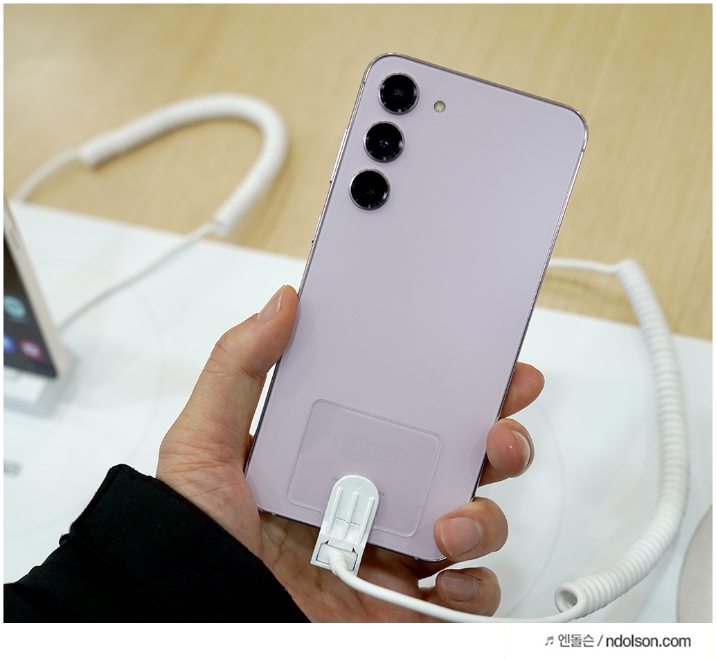 전작 갤S22와 비교해 외형적인 디자인 변화가 있습니다. 후면 카메라 부분은 갤럭시 S22 시리즈까지 일부 모델에 적용됐던 컨투어컷(카메라 주변을 사각형 형태로 둘러싼 디자인)이 사라졌습니다.
