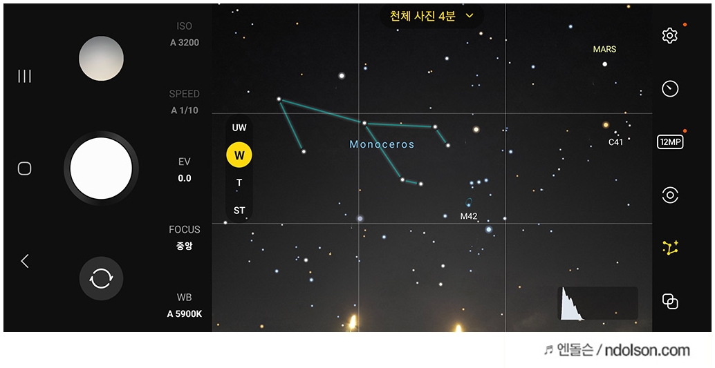 특히 EXPERT RAW 전문가 모드를 갤럭시 S23 카메라 설정에서 별자리 가이드를 켜두면 밤하늘의 별자리를 찾아 줍니다. RAW 파일로 저장해 별자리 궤적 사진이나 정밀한 후보정도 가능합니다. 대신 파일용량이 꽤나 크네요!