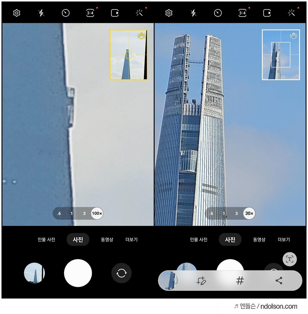 약간의 환상을 가질 수 있는데, 갤럭시 S23 울트라의 100배 스페이스줌 카메라로 촬영한 결과물이 무조건 좋지는 않습니다. 놀랍게도 먼 거리를 촬영할 수 있지만 화질은 나쁠 수 있다는 말이죠.