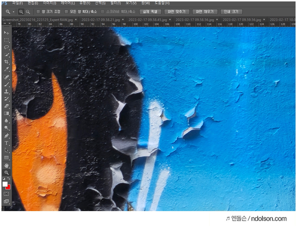 포토샵에서 갤럭시 S23으로 촬영한 사진을 읽어 확대 해보았습니다. 갤럭시S23 울트라의 2억 화소(200MP)로 촬영한 결과물입니다.