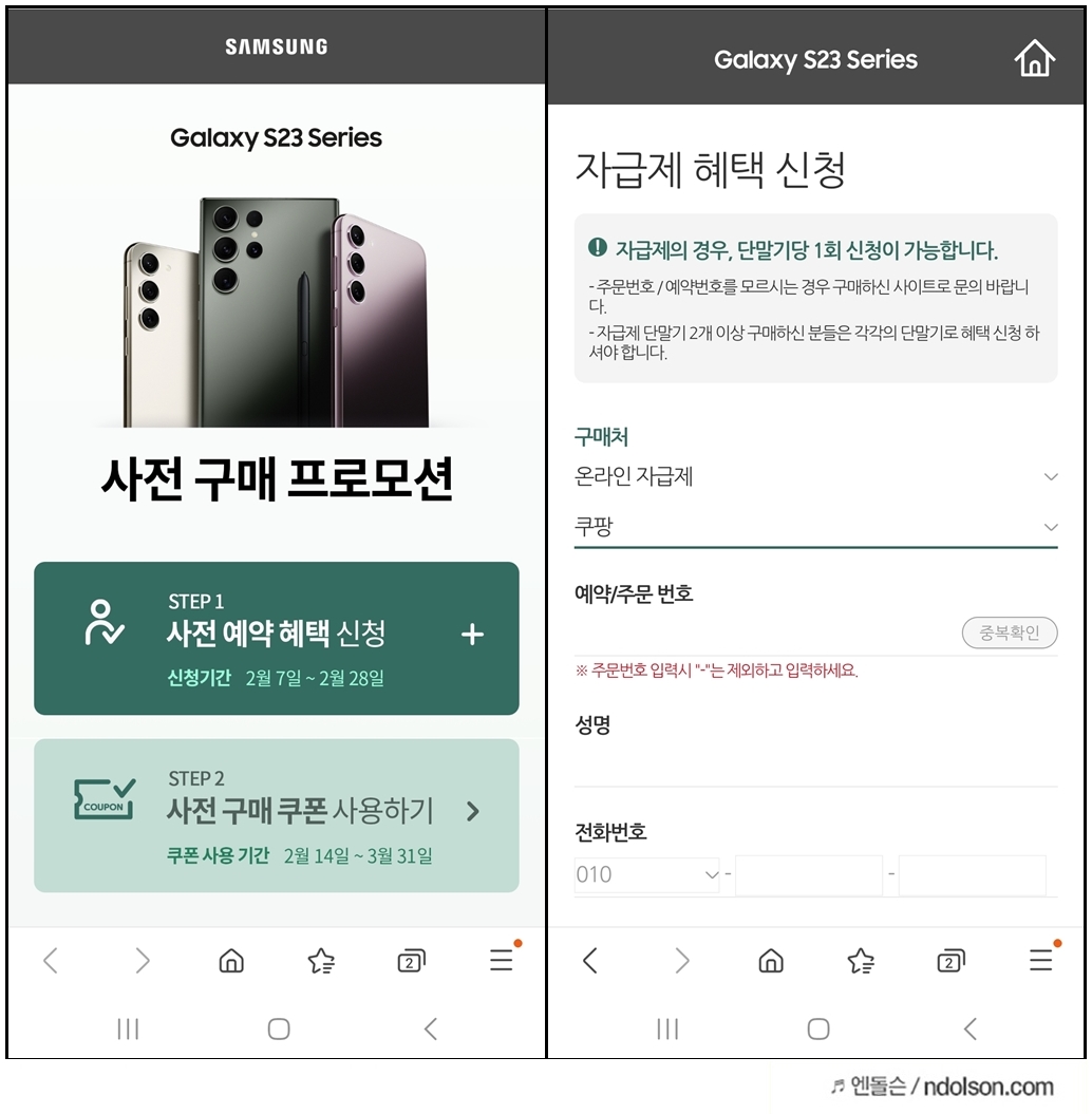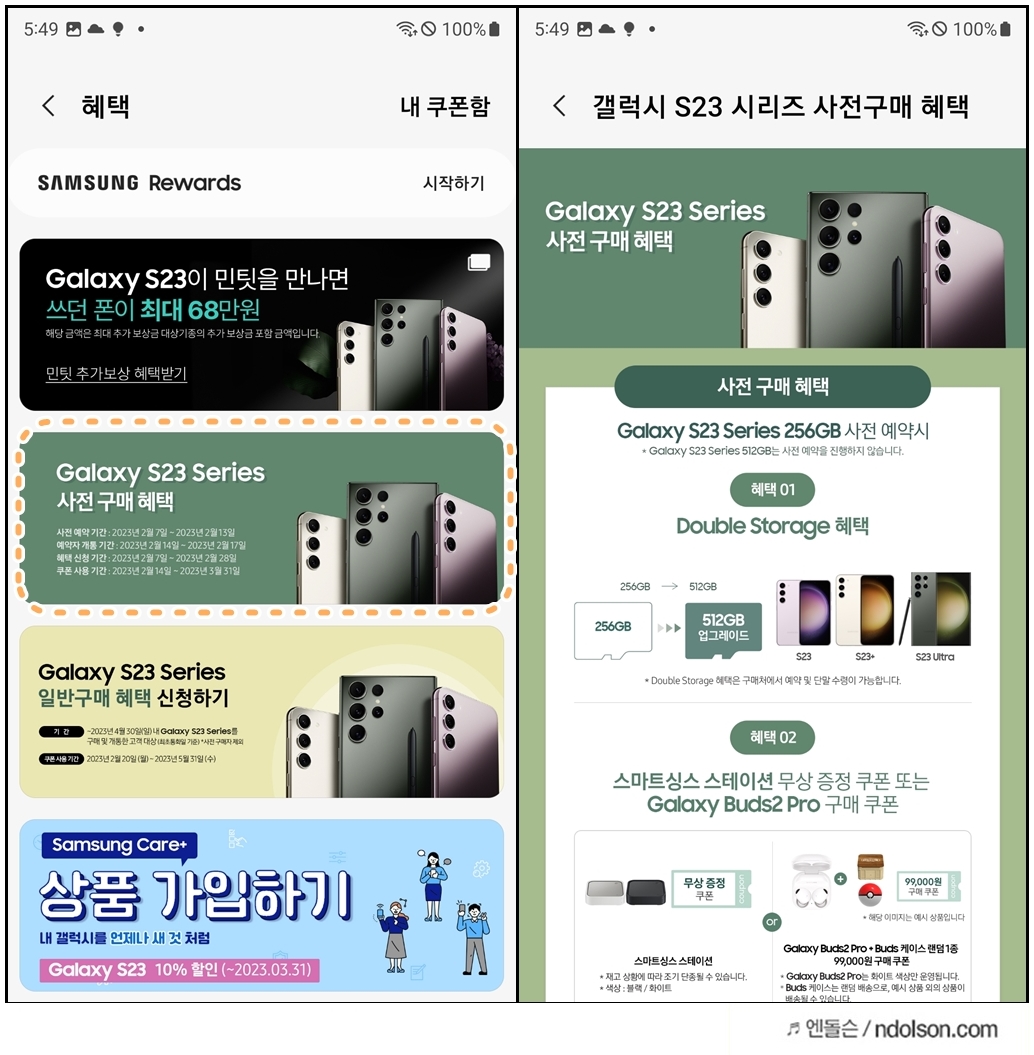 갤럭시 S23의 사전구매 프로모션으로 사전예약 혜택을 신청하시면 됩니다.