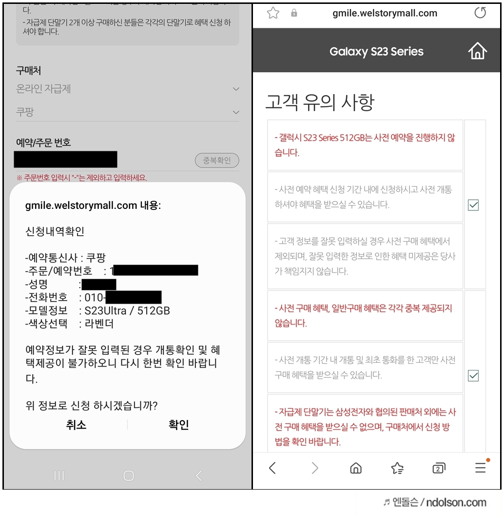 자신이 갤럭시 S23 구매할 때의 예약번호를 찾아서 입력하면 확인이 됩니다.