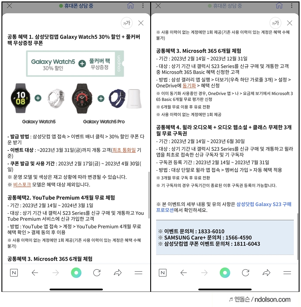 또 갤럭시 워치 5 30% 할인 쿠폰 등의 혜택이 있으니 참고하세요.