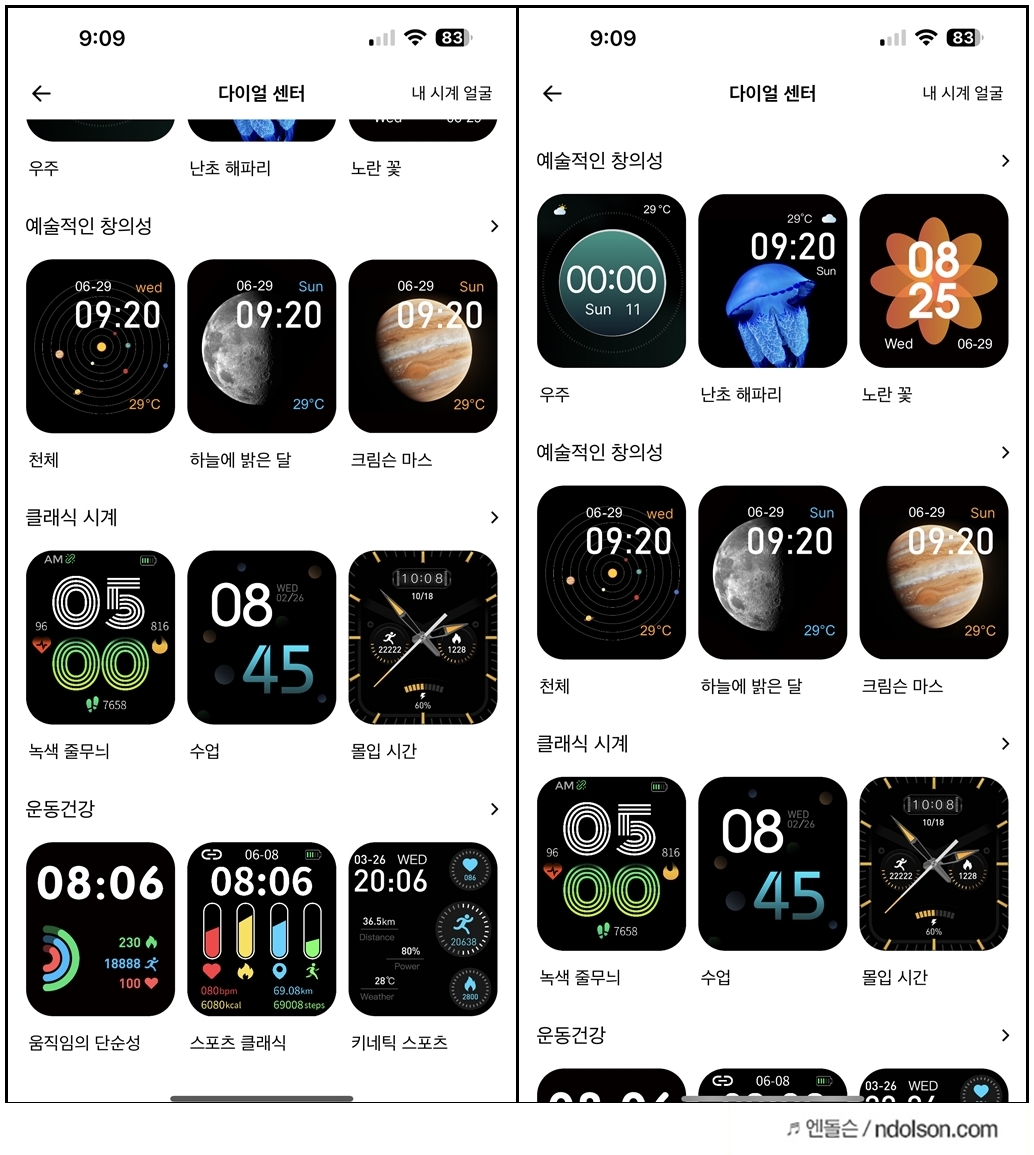 시계워치는 생각보다 많은데, 설정해 두면 좀 이쁘긴 합니다.
