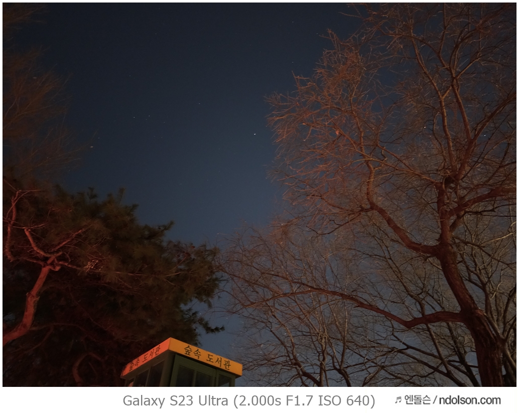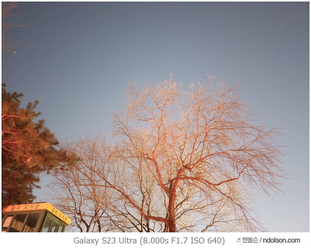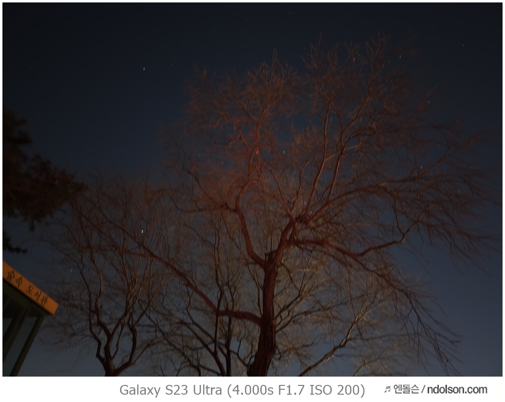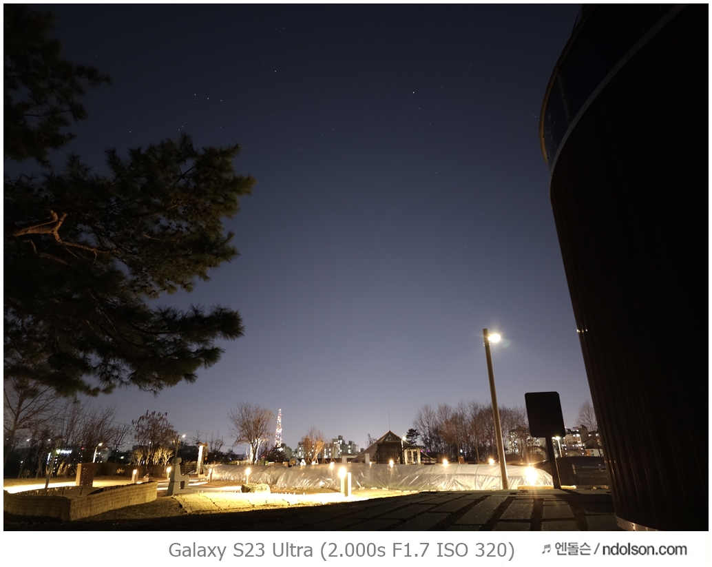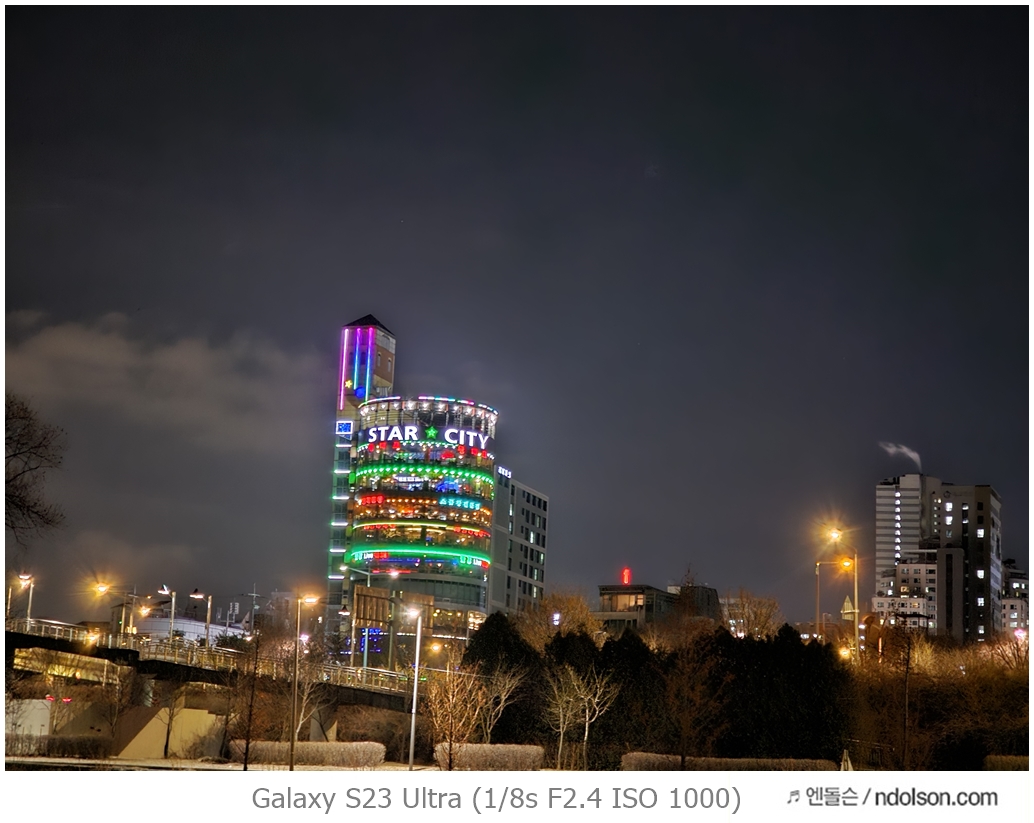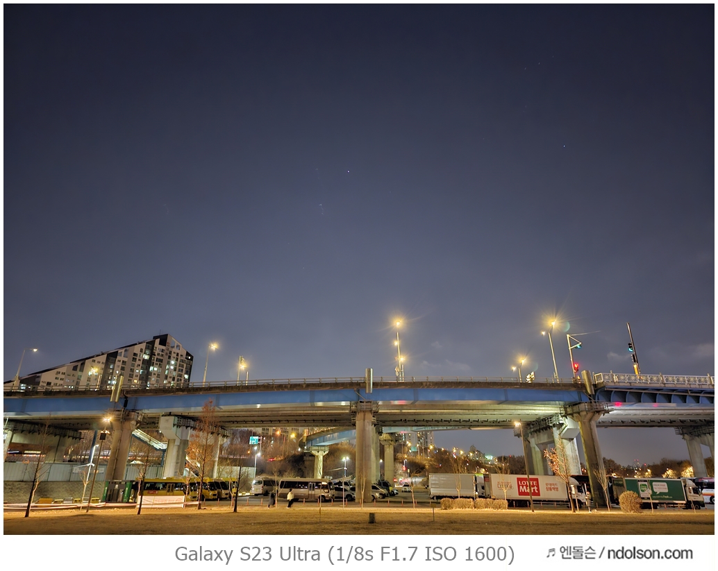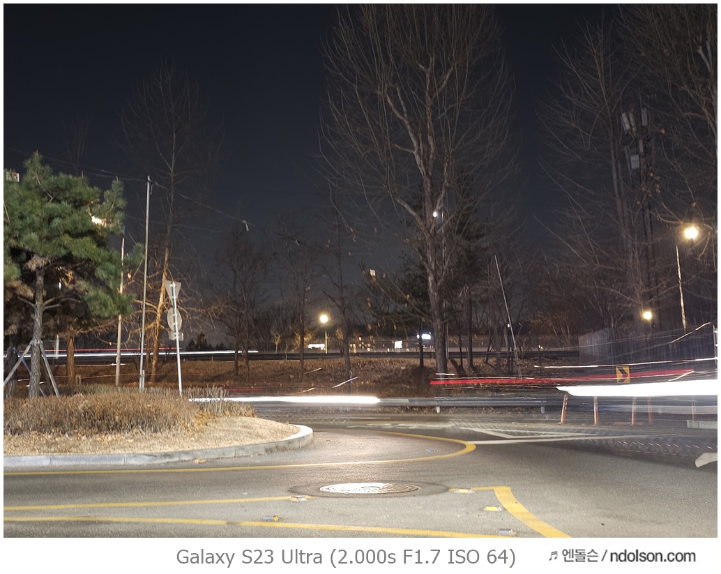 밤하늘과 거리 등의 야간 사진을 갤럭시 S23 울트라로 하였습니다. 습작도 포함되어 있는데, 프로모드에서 셔터스피드를 조절해서 차량이 지나가는 불빛 촬영을 하는 신기루 현상은 DSLR 놀이였는데 참 재미있네요.