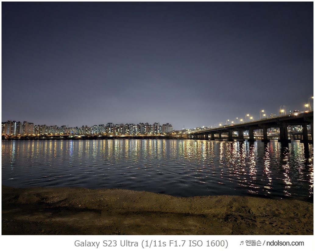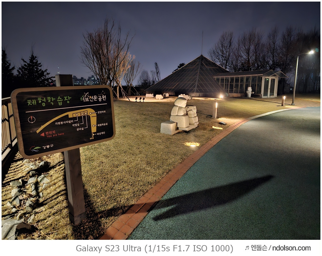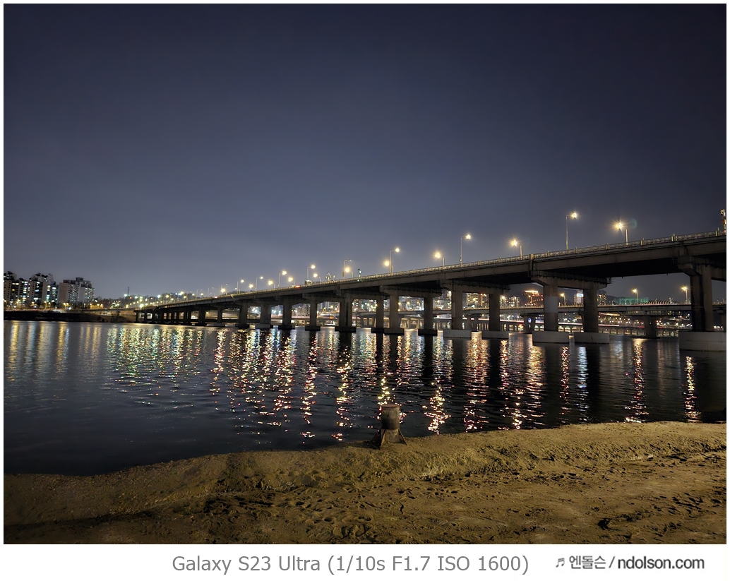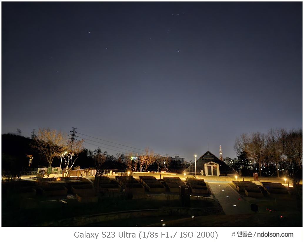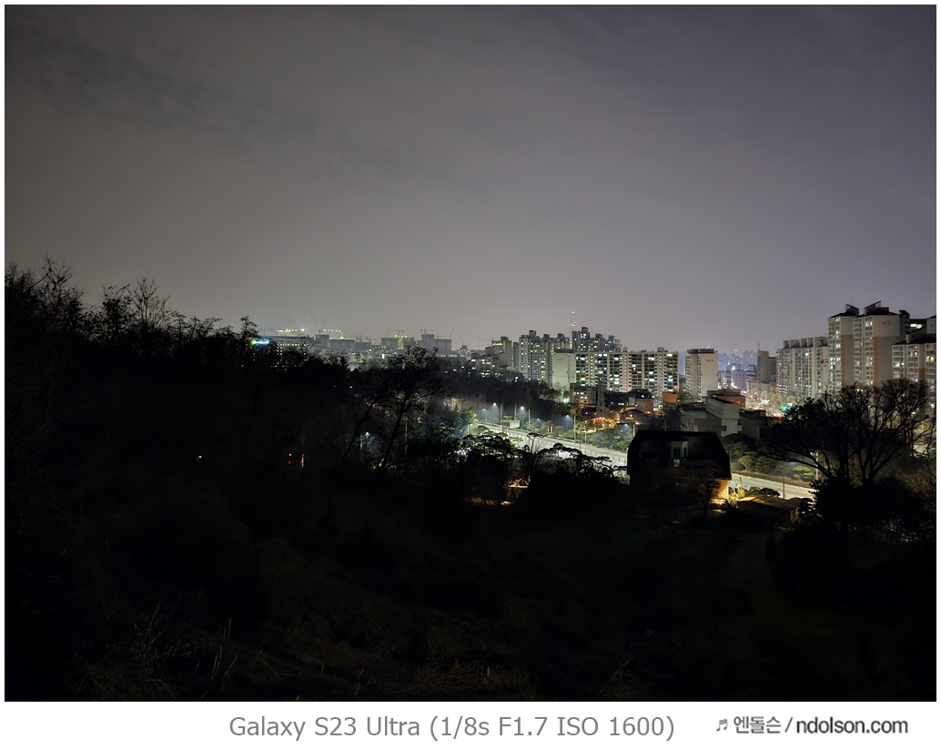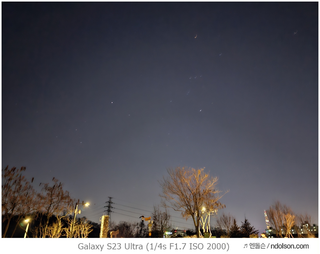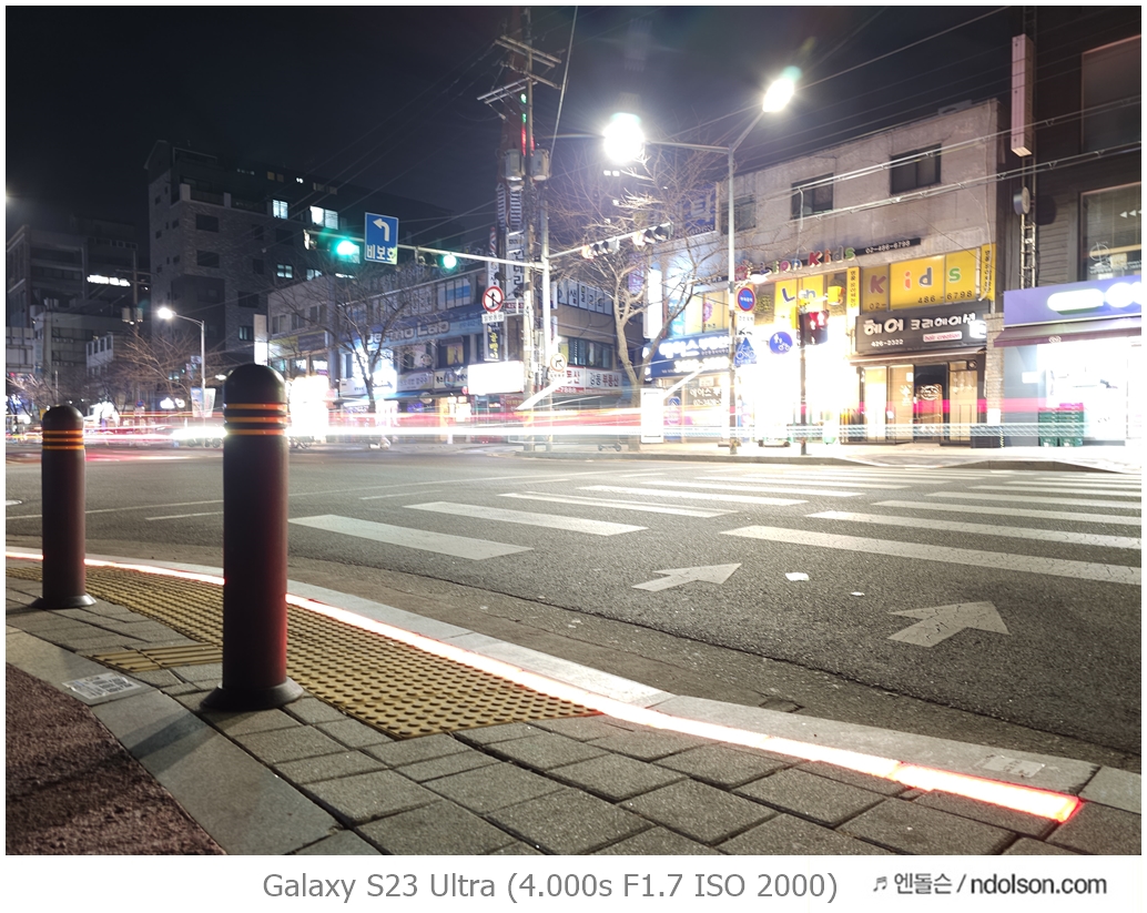 밤하늘과 거리 등의 야간 사진을 갤럭시 S23 울트라로 하였습니다. 습작도 포함되어 있는데, 프로모드에서 셔터스피드를 조절해서 차량이 지나가는 불빛 촬영을 하는 신기루 현상은 DSLR 놀이였는데 참 재미있네요.
